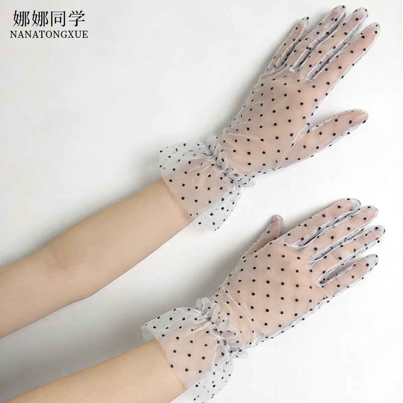 女士性感网纱花边点点手套短款防晒透气蕾丝婚礼新娘礼服配饰手套