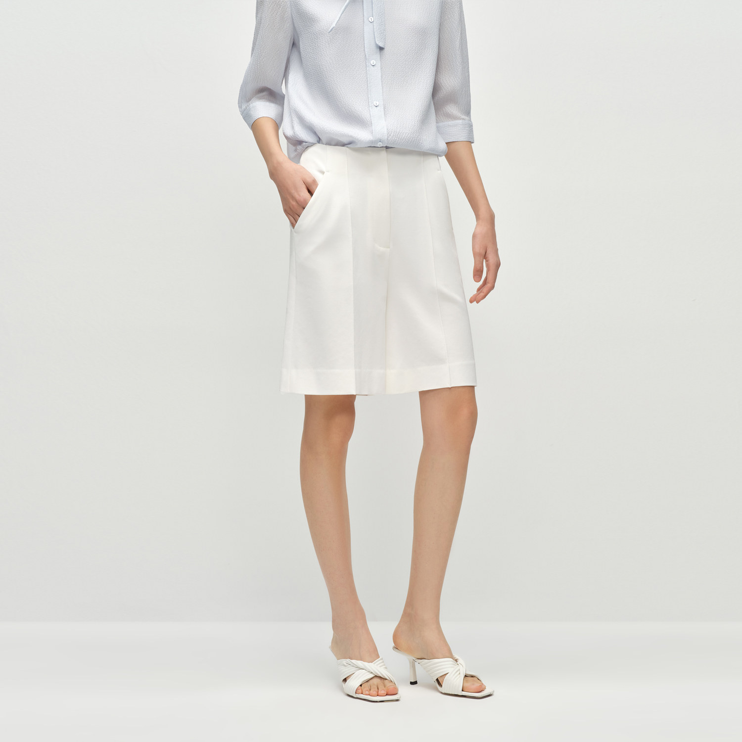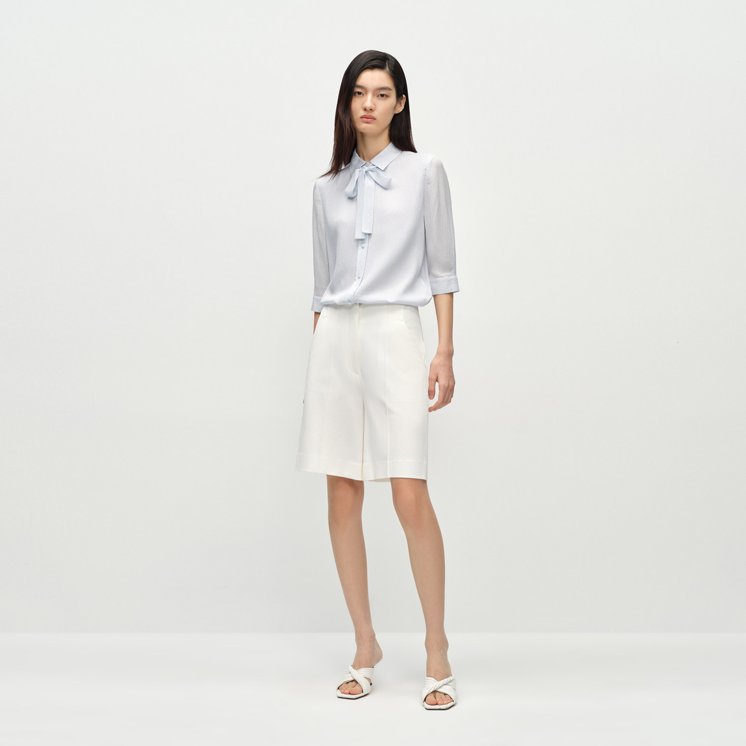 OVV2025春夏新款女装淡人经典浅色弹力舒适透气简约休闲短裤