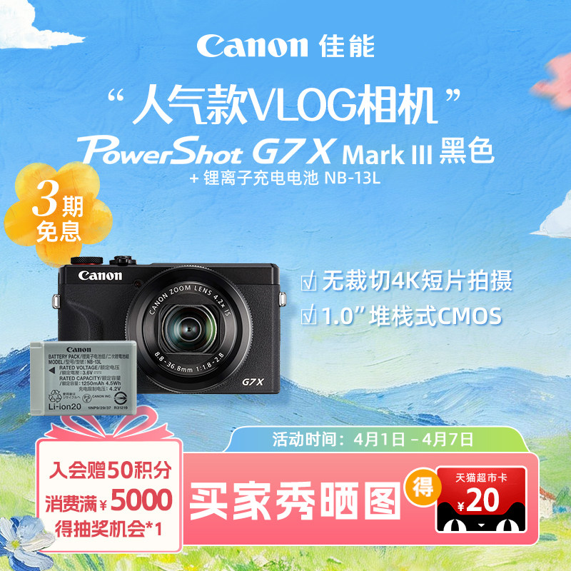 [旗舰店]Canon/佳能 PowerShot G7 X Mark III g7x3 VLOG相机