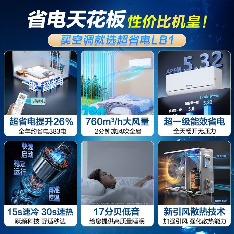 海尔空调1匹1.5匹2匹家用一级变频统帅卧室挂机冷暖省电LA1旗舰店