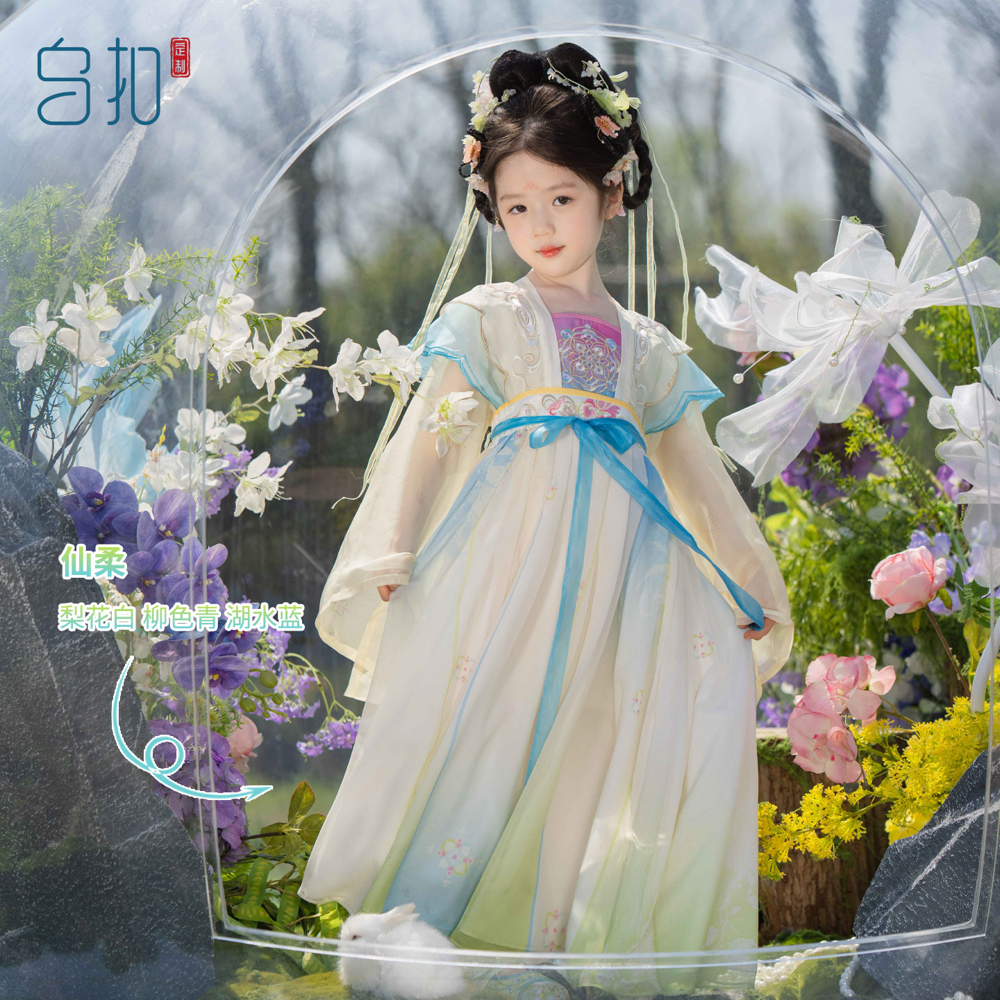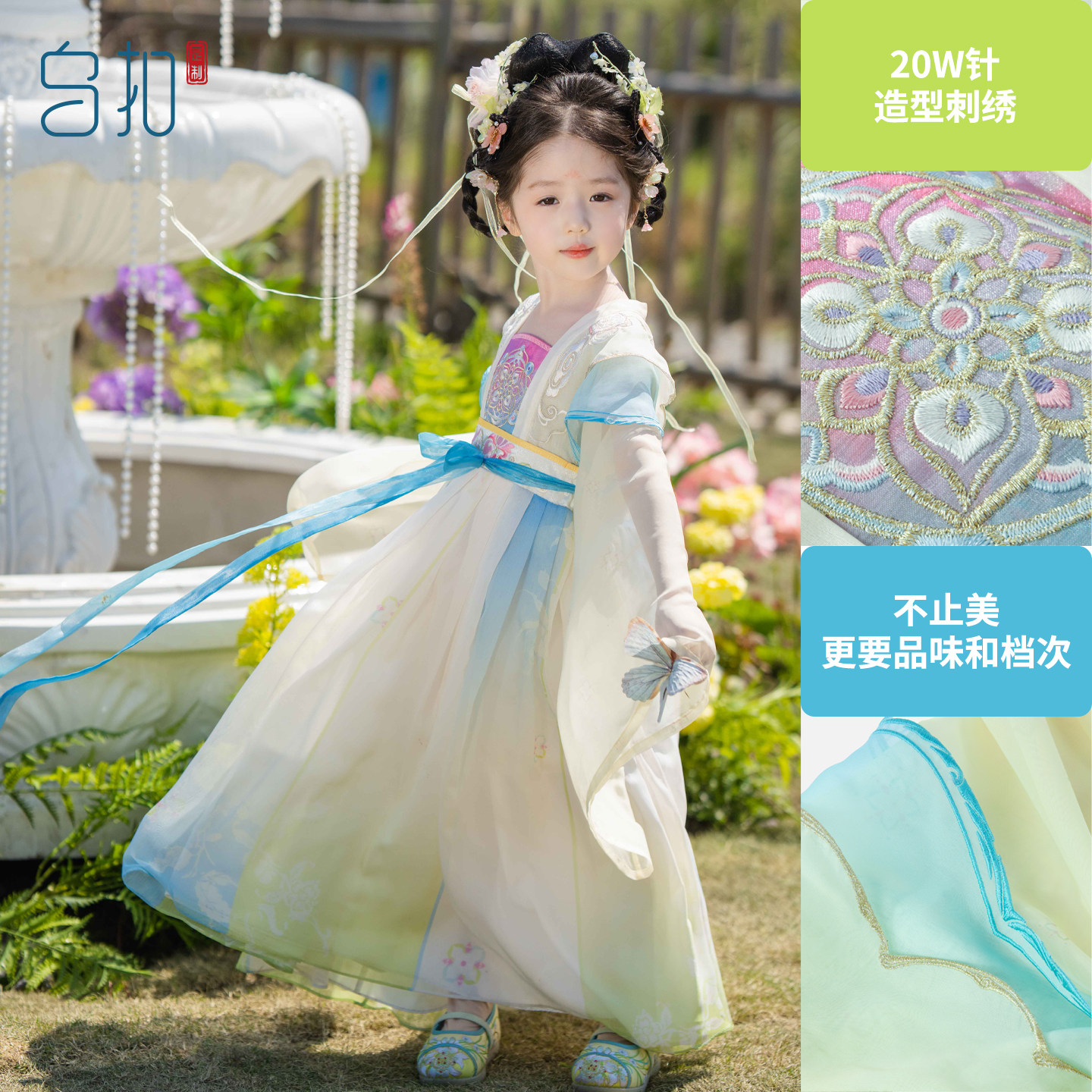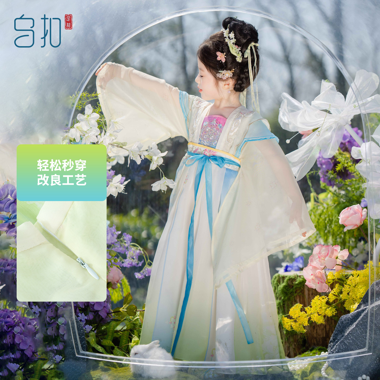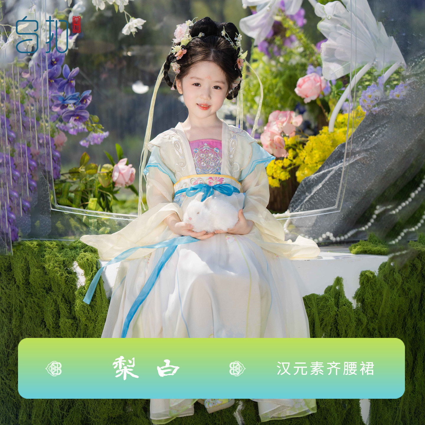 乌扣.梨白 女童汉服春秋款儿童超仙长袖古装襦裙国风连衣裙秋季