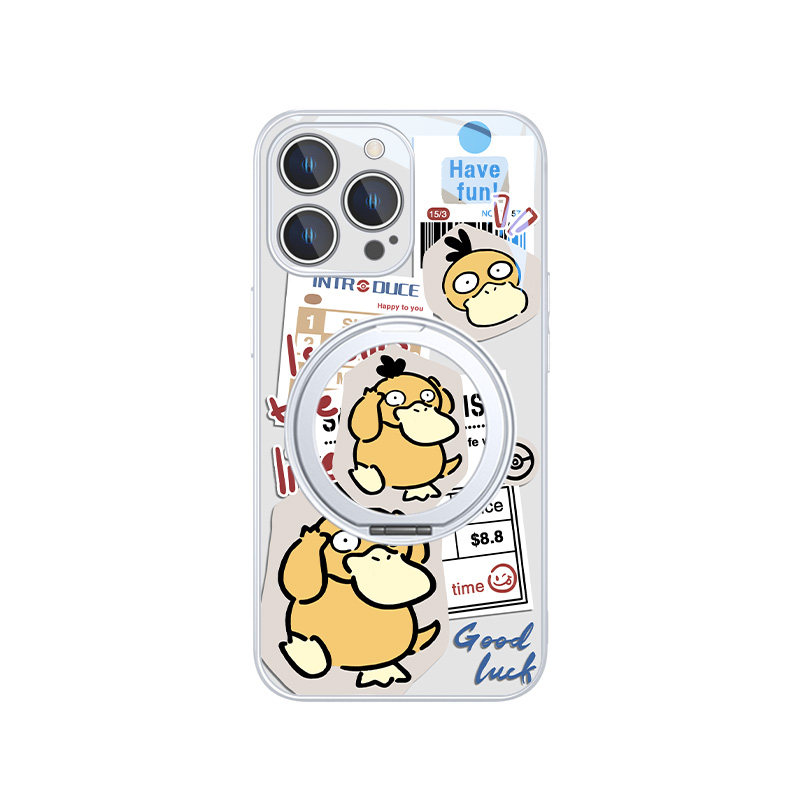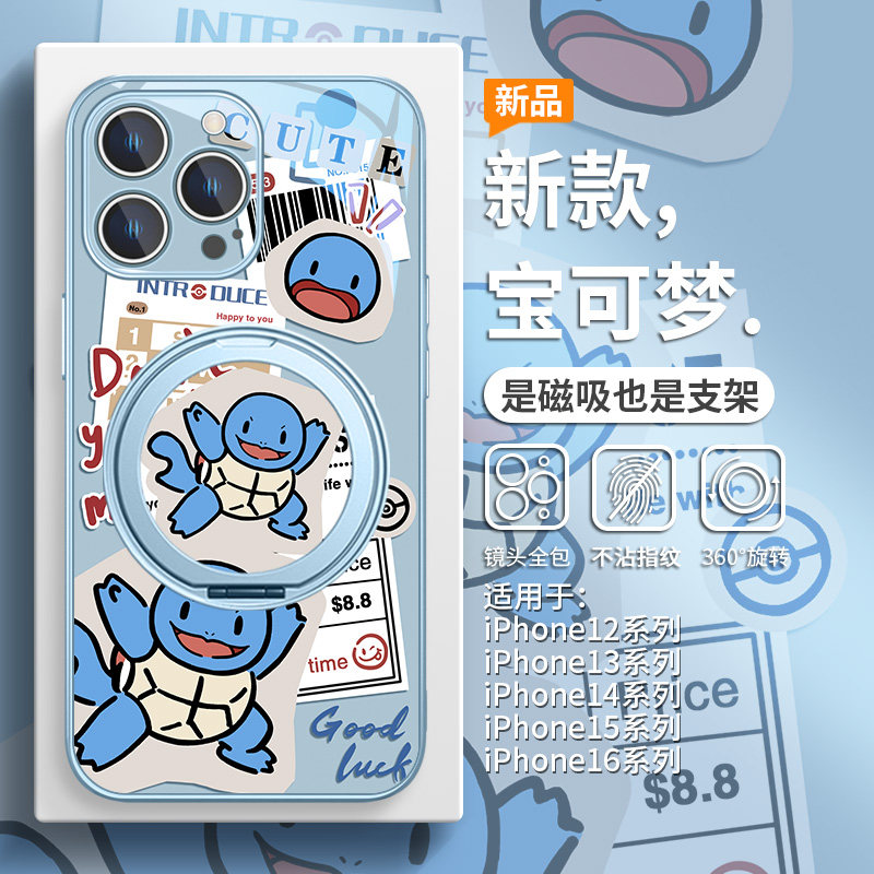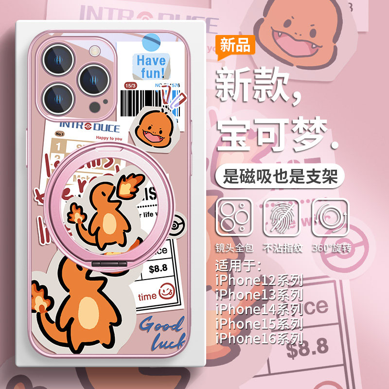 宝可梦适用iPhone16promax情侣手机壳磁吸带支架苹果15plus报纸皮卡丘14pro耿鬼13创意卡通IP12支点壳magsafe