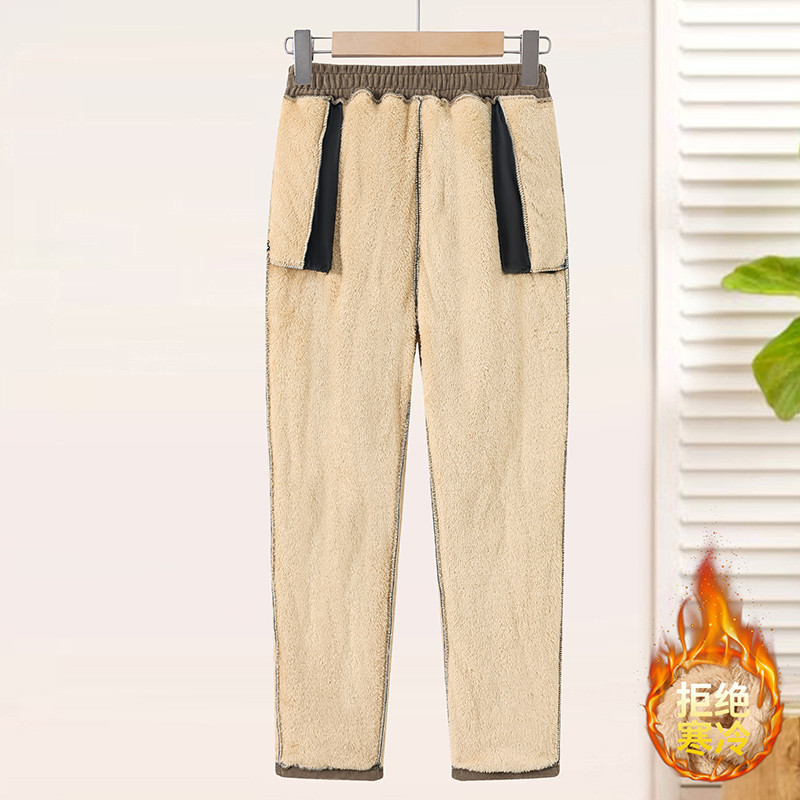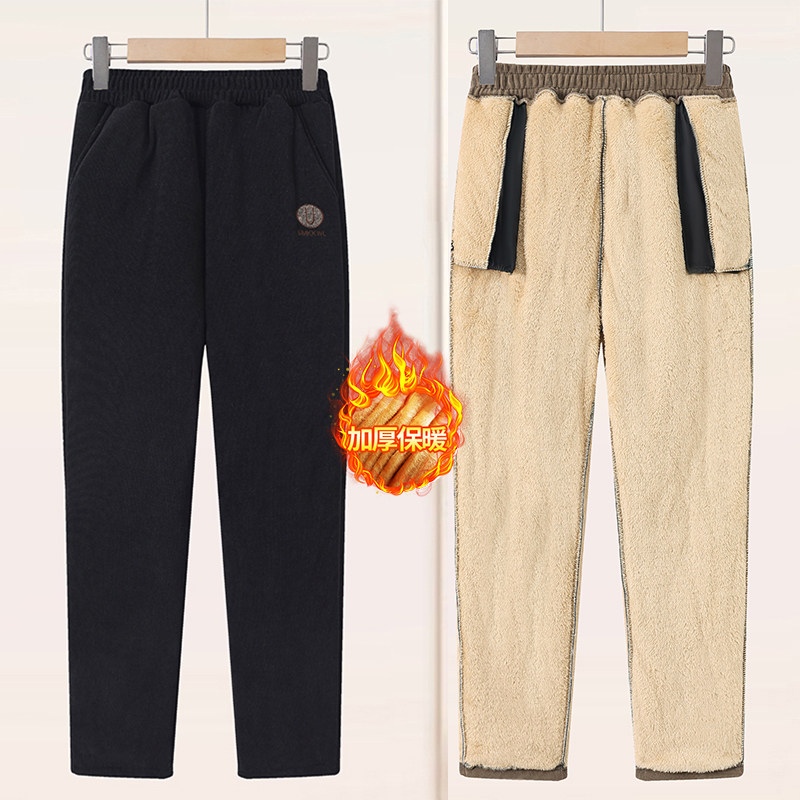妈妈秋冬季羊羔绒外穿棉裤中老年人加绒加厚灯芯绒保暖裤子女三层