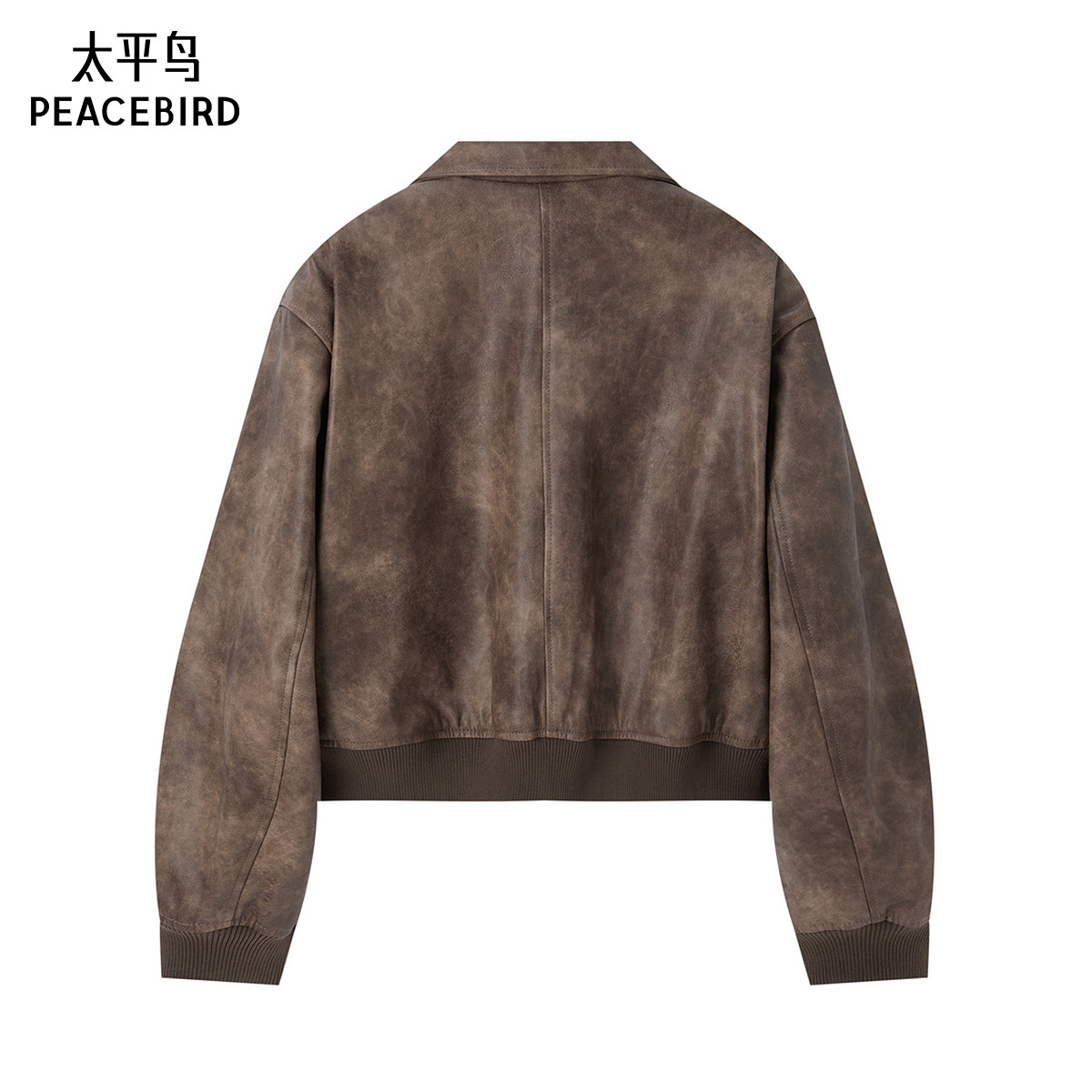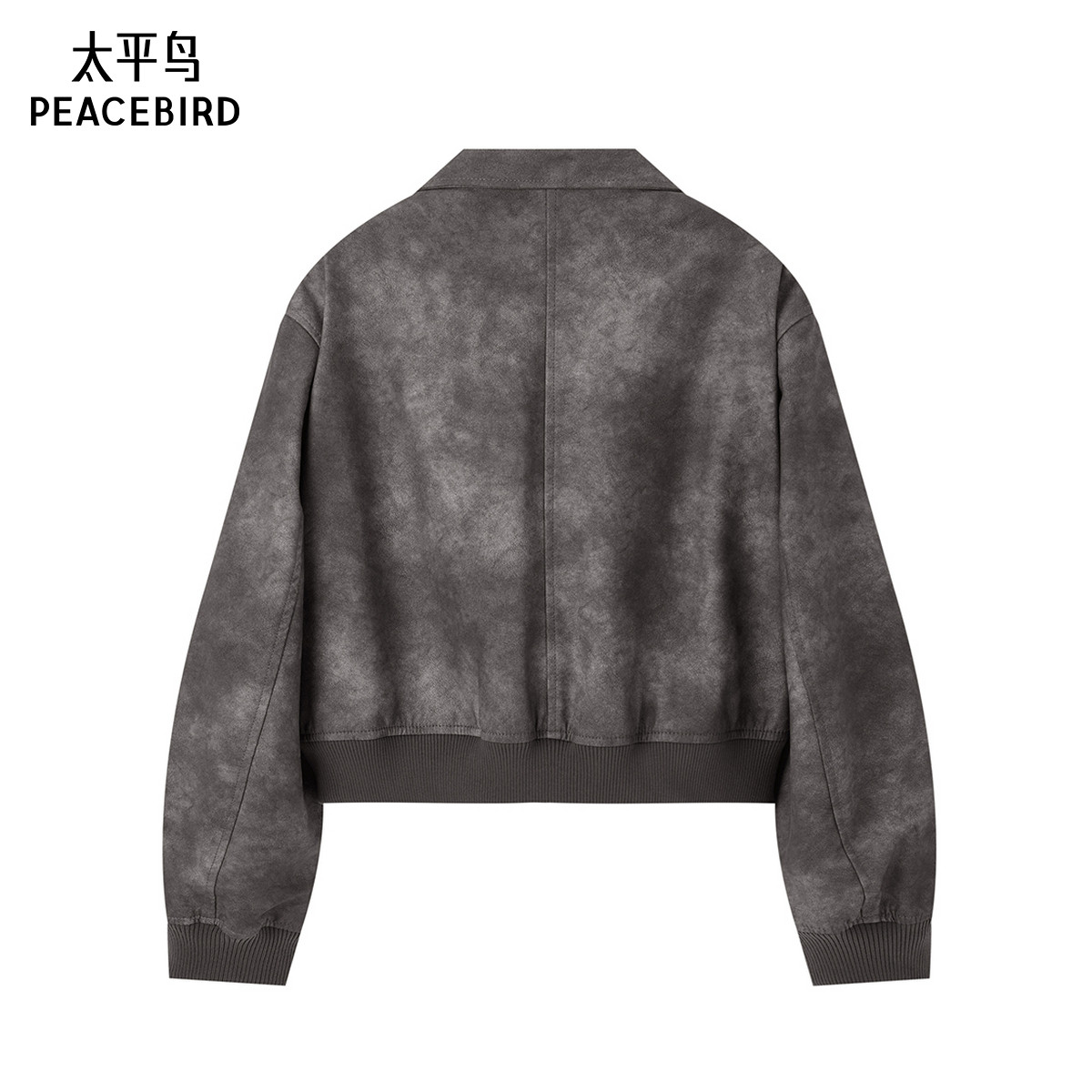 太平鸟女装年春季款仿水洗PU皮衣外套女时尚品质A3BBE1169