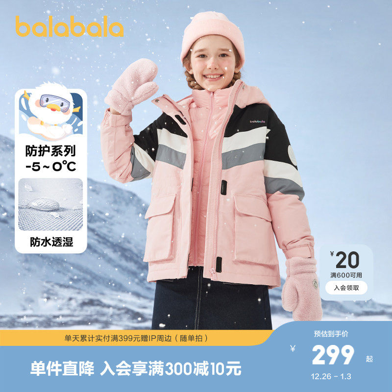 巴拉巴拉羽绒服女童秋冬季童装中大童加厚保暖外套两件套