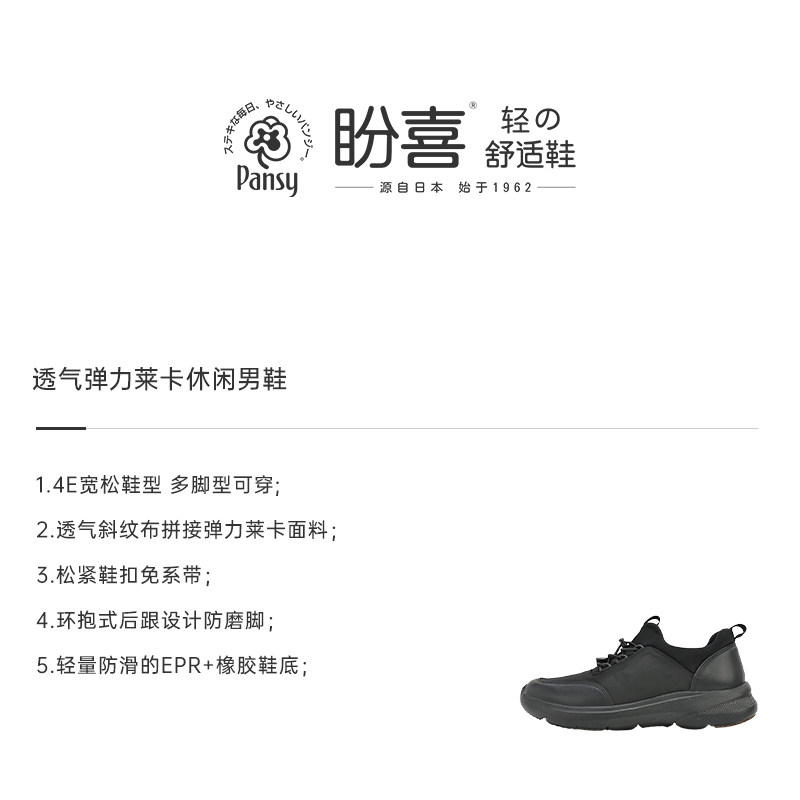 Pansy盼喜日本男鞋新款商务运动休闲免系带男款百搭轻便舒适秋款