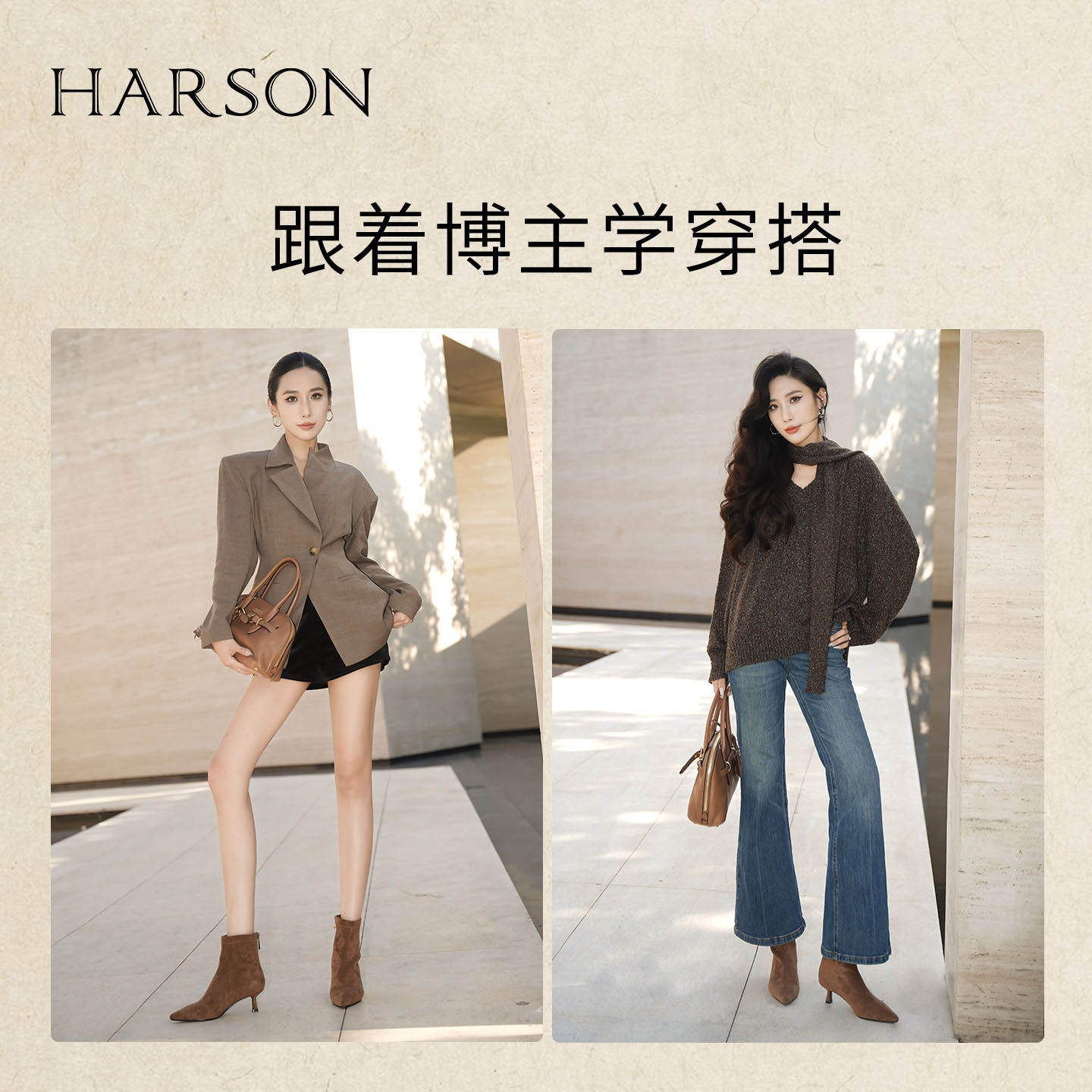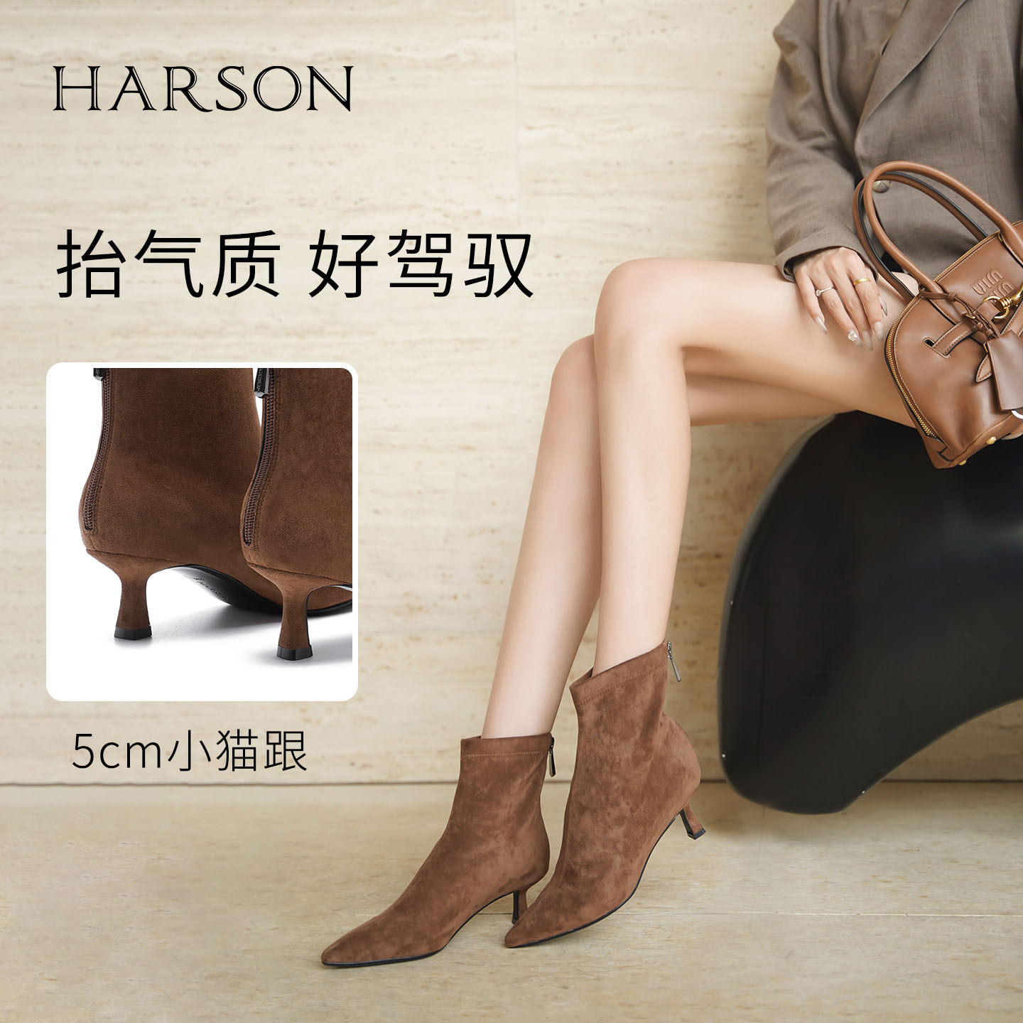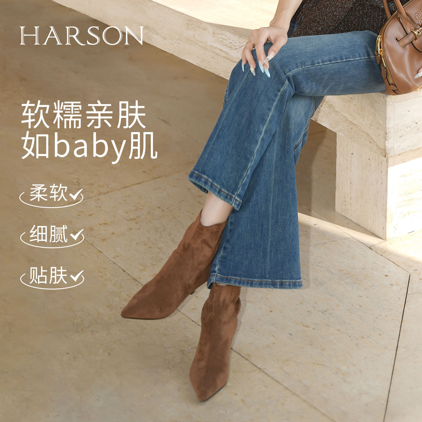 哈森/HARSON【时髦假日】25冬新款尖头气质细高跟弹力瘦瘦靴短靴