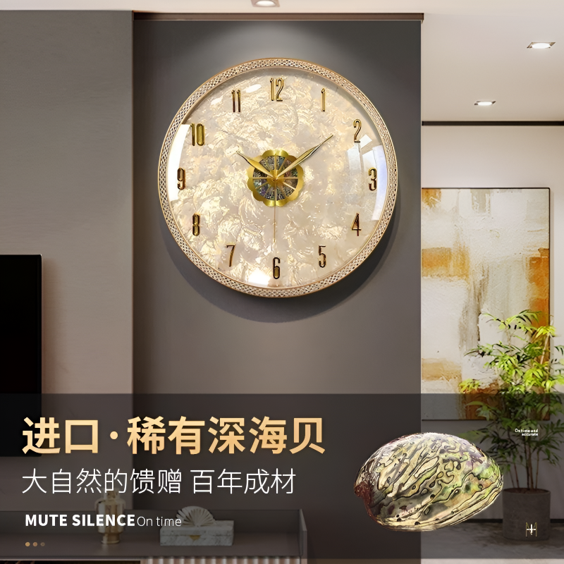 MJK钟表挂钟客厅家用简约现代实木轻奢时钟超静音壁钟挂表钟表