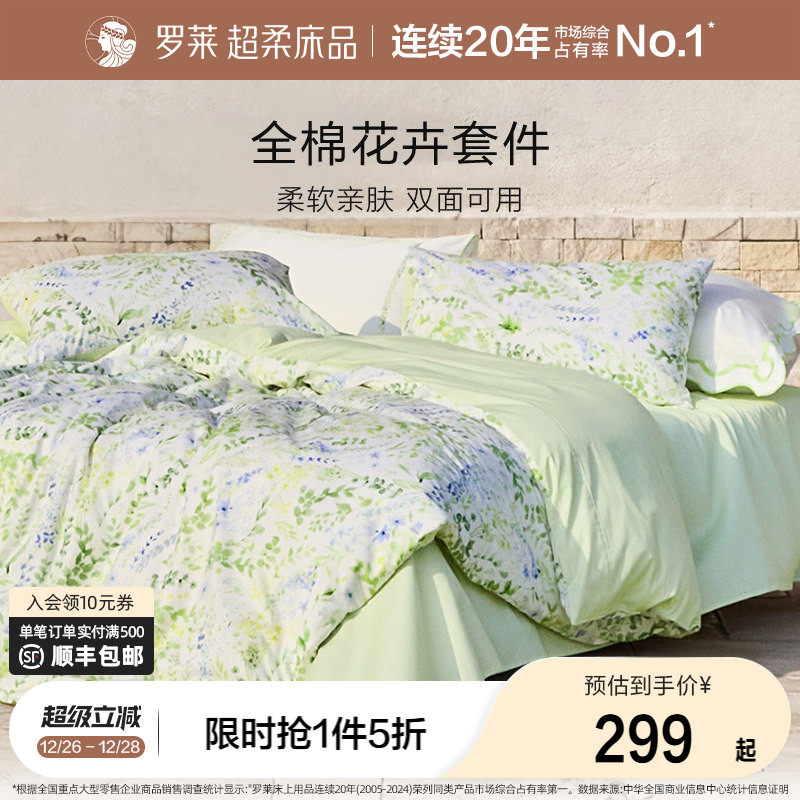 罗莱家纺2025新款全棉纯棉三件套床单被套被罩床上用品四件套