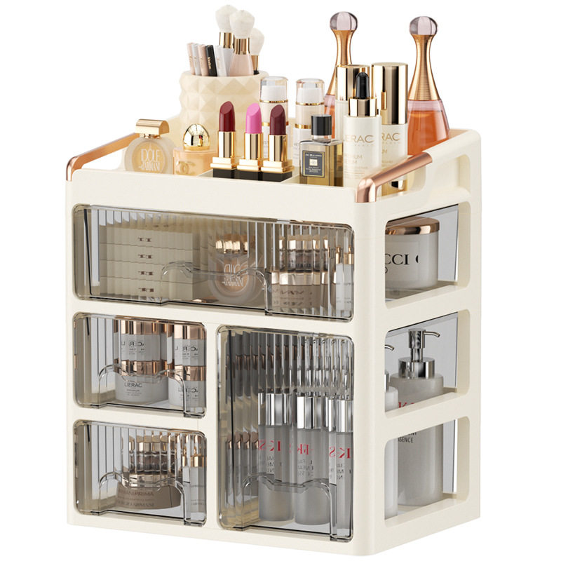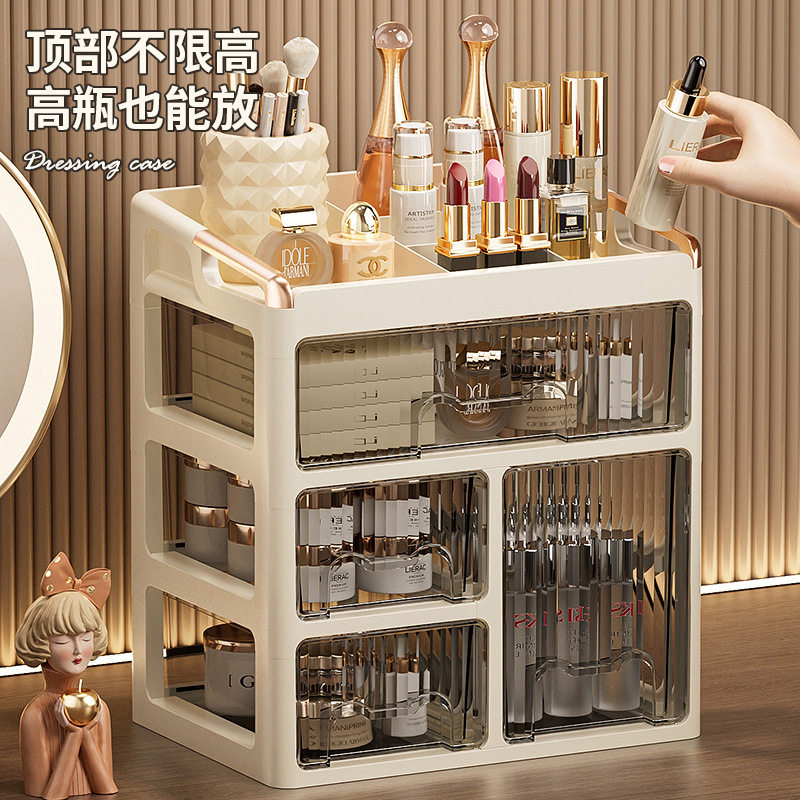 抽屉式化妆品收纳盒高级感梳妆台口红护肤品桌面大容量置物美学