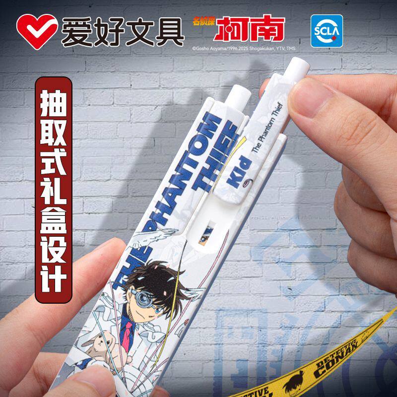 爱好名侦探柯南联名按动中性笔黑色刷题笔ST头速干顺滑水笔学生用0.5mm按压式作业笔怪盗基德限量版周边文具