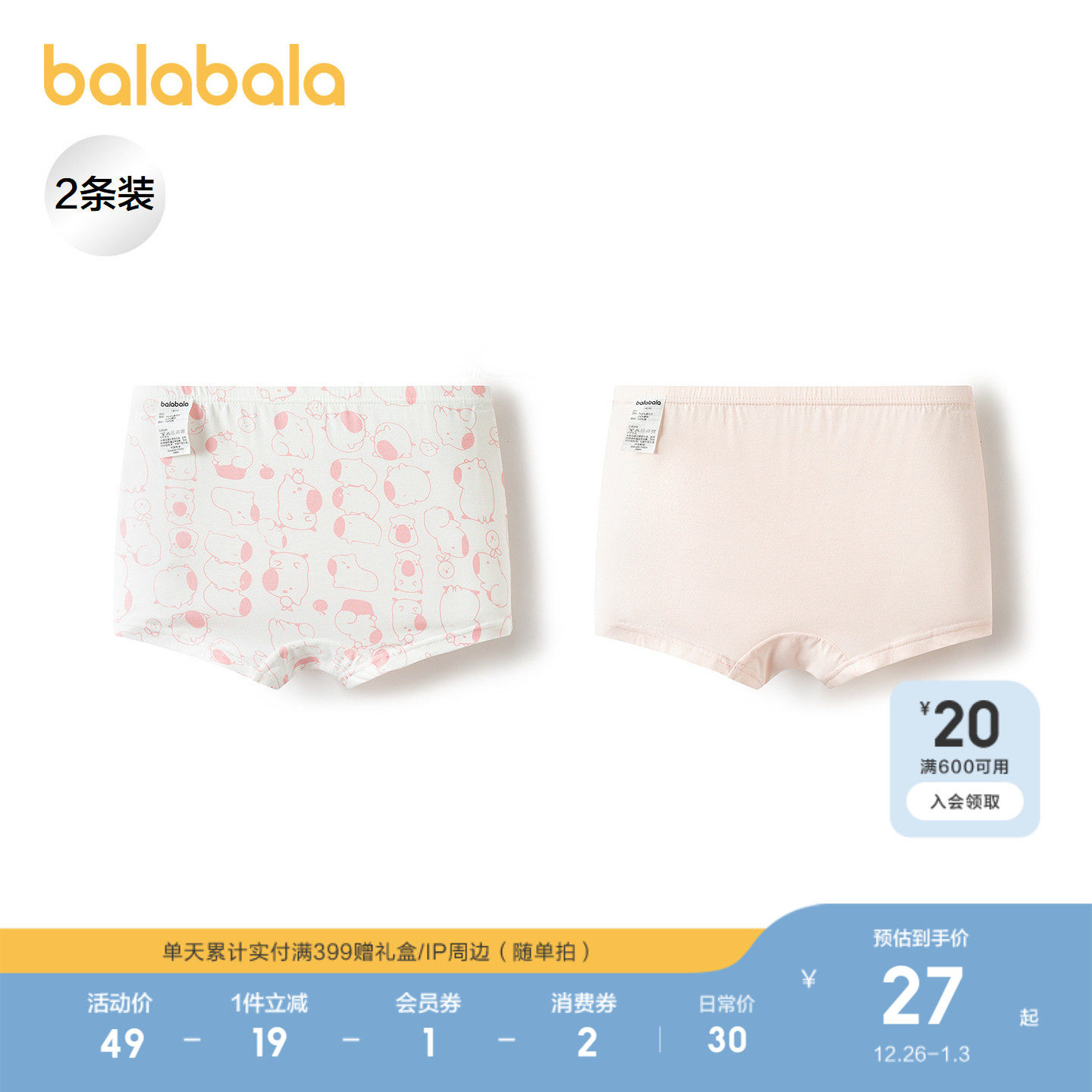 巴拉巴拉女童内裤儿童平角短裤中大童宝宝不夹PP2条装抗菌舒适萌