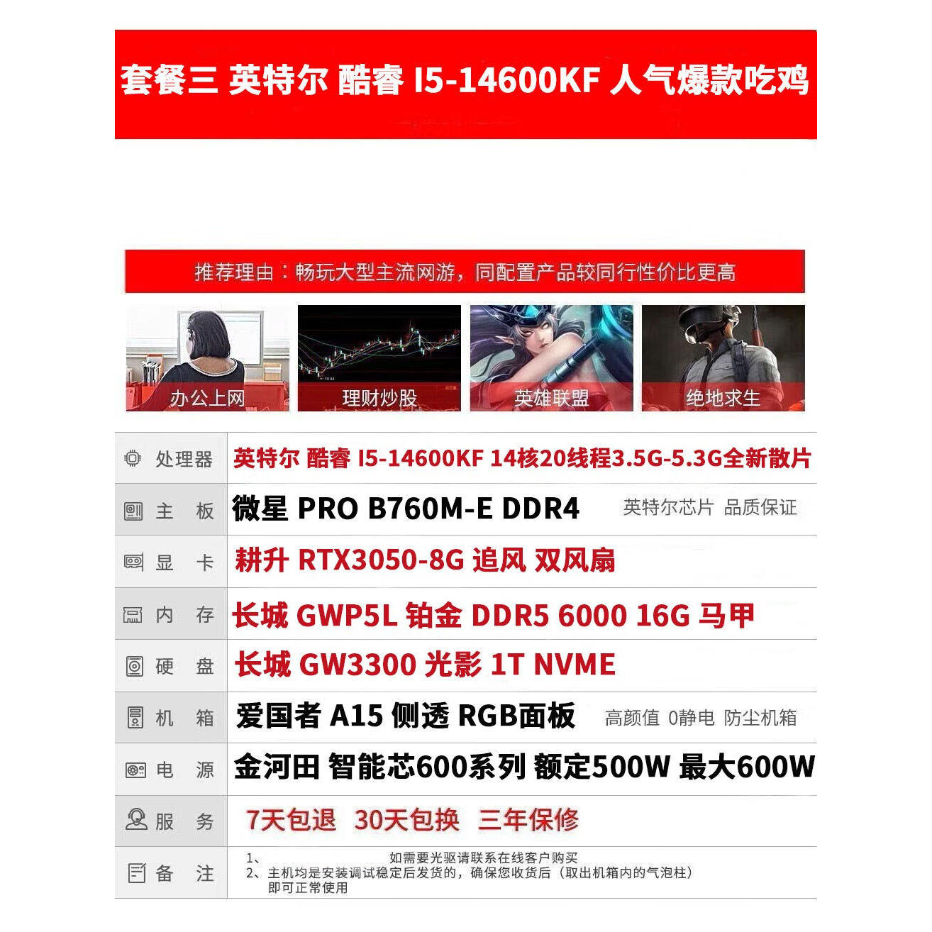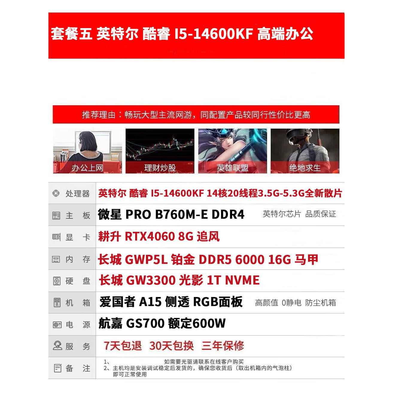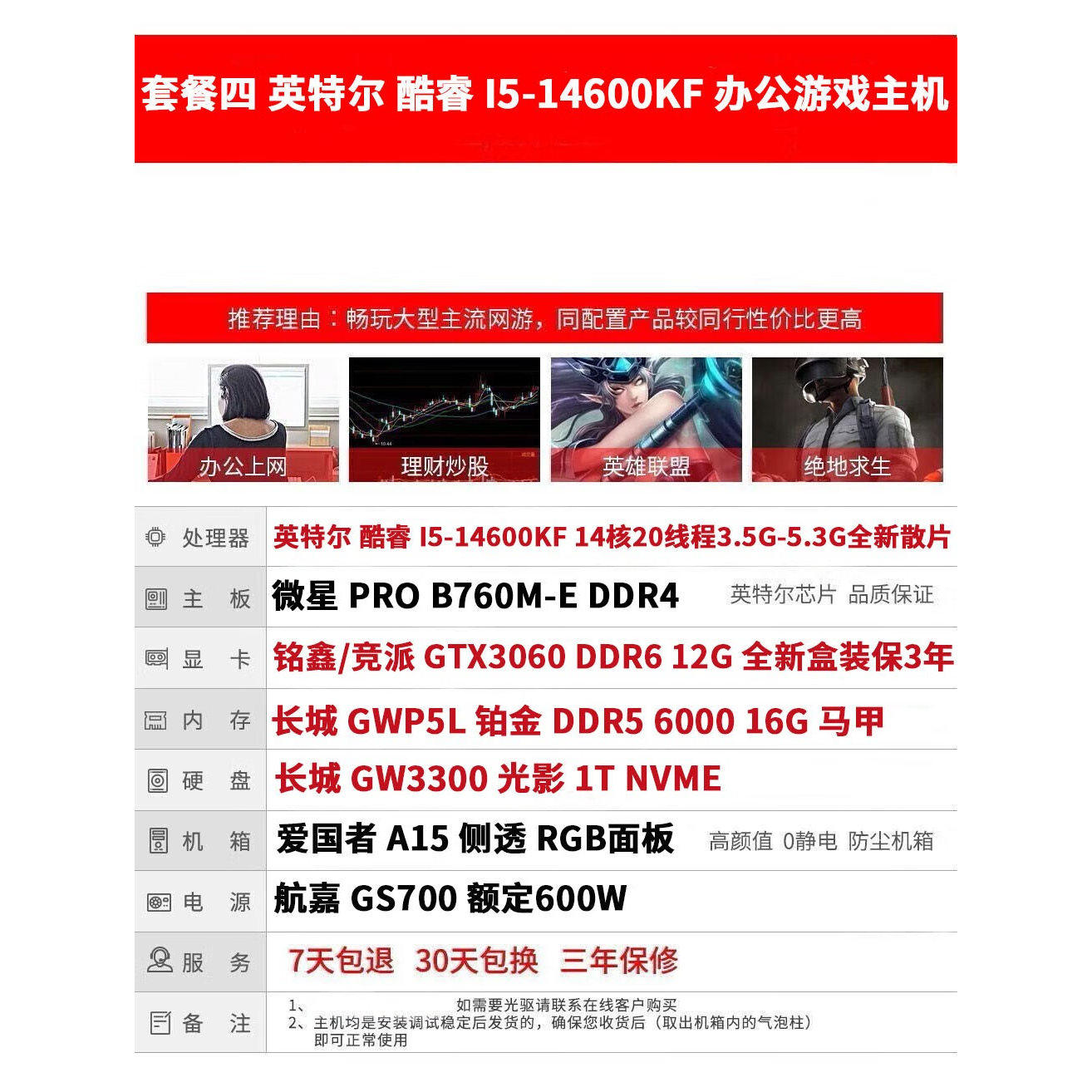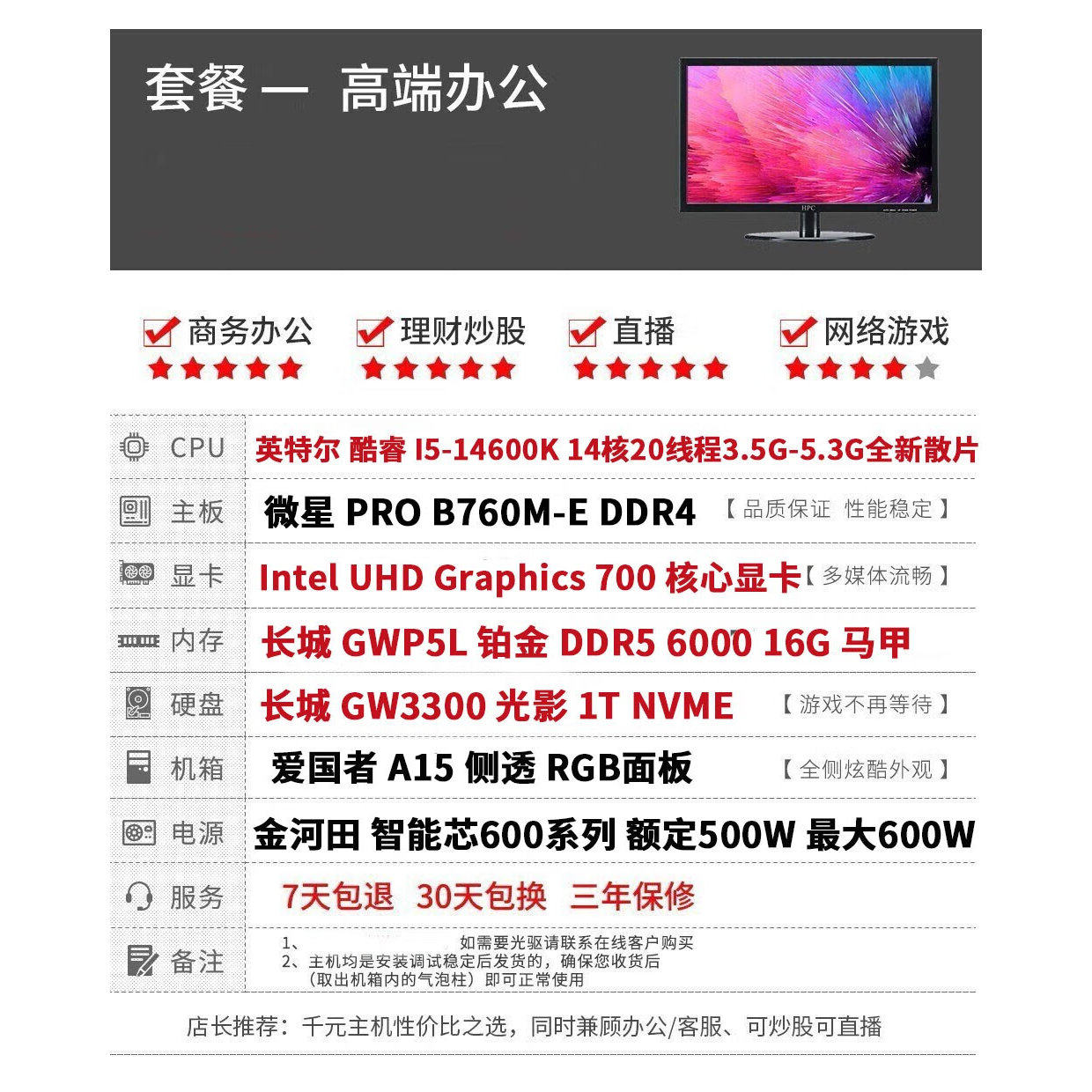直播视频剪辑14代i5-14600KF独显游戏主机台式机全套渲染吃鸡电脑
