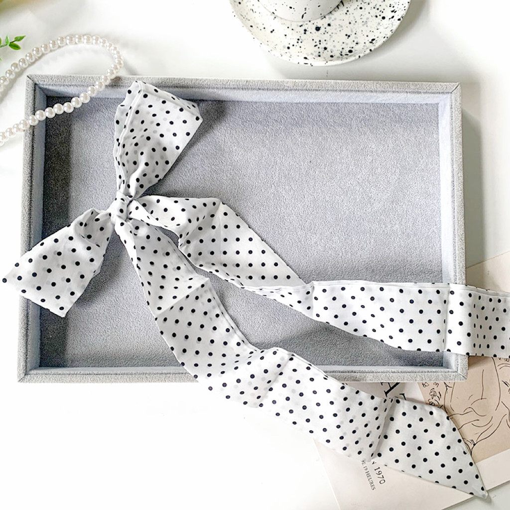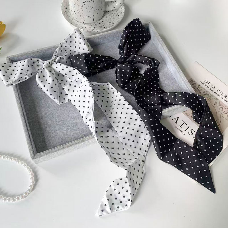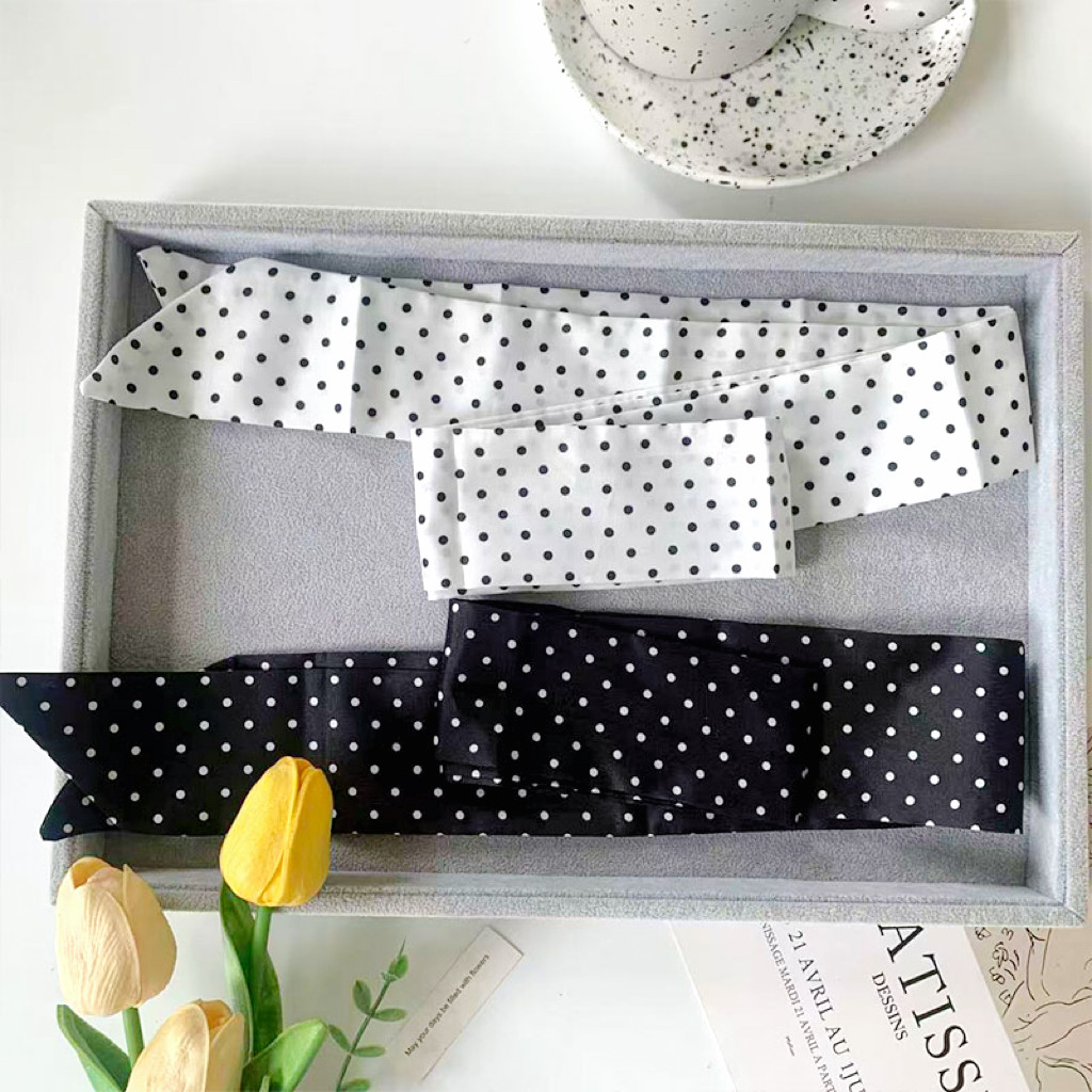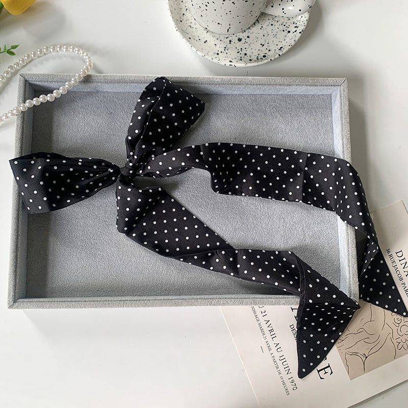 黑色高级波点长条丝巾丝带时尚新款百搭装饰领巾发带ins飘带