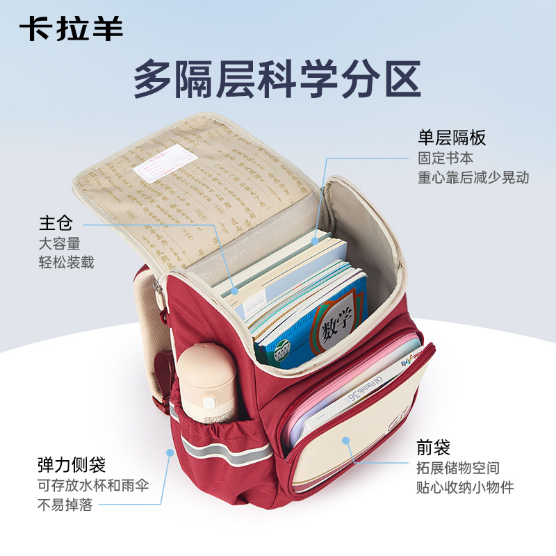 【新款】卡拉羊1-3-6年级小学生书包减负护脊大嘴书包儿童双肩包超轻女生书包男孩大容量书包官方旗舰店正品