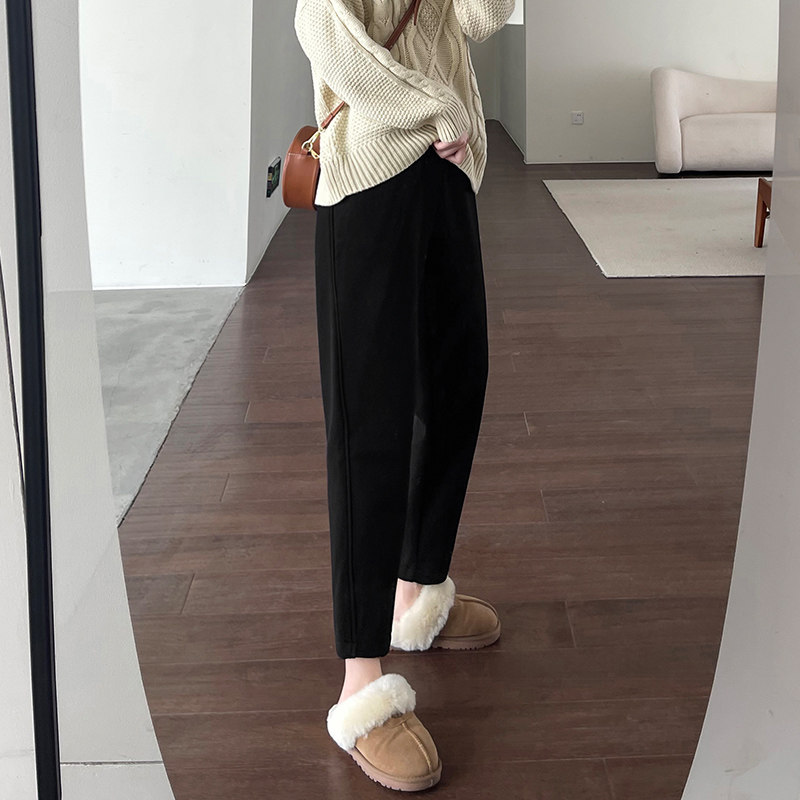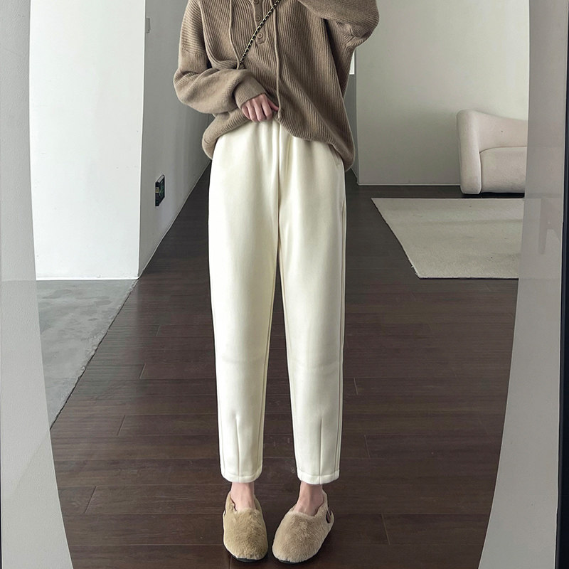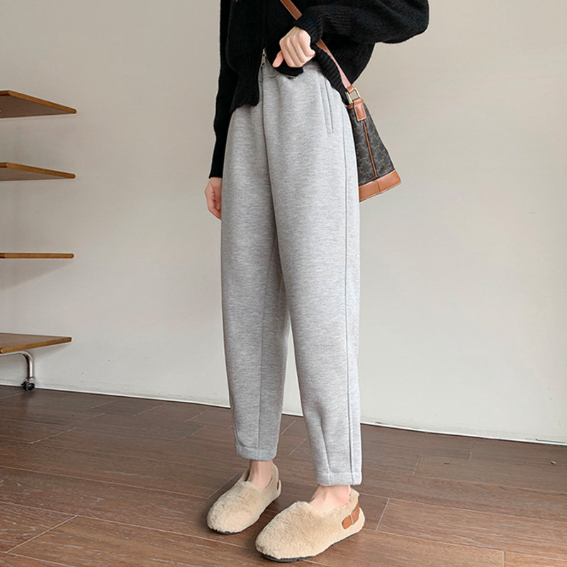 哈伦裤女2025新款春秋冬款小个子胖mm卫裤宽松休闲加绒萝卜裤杏色
