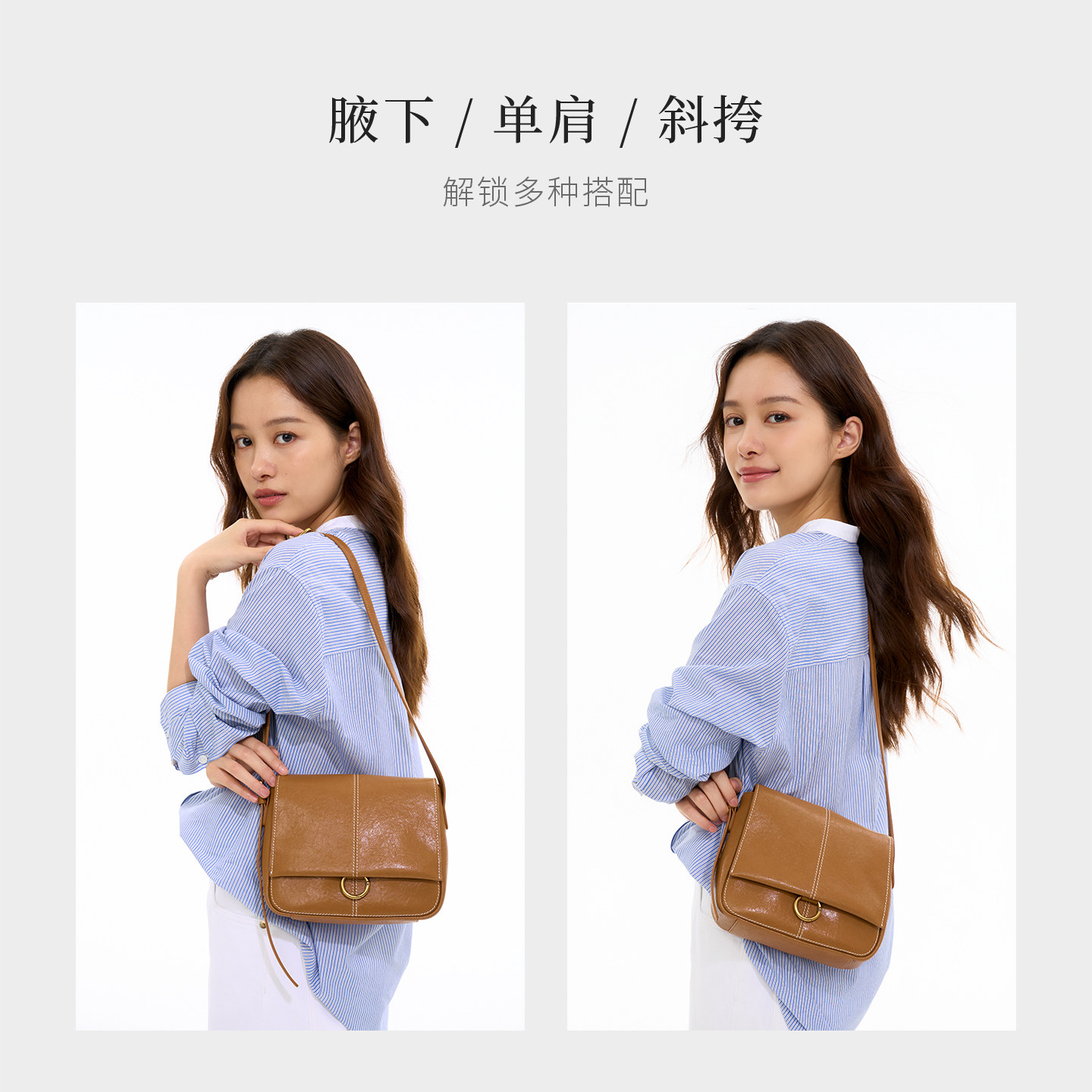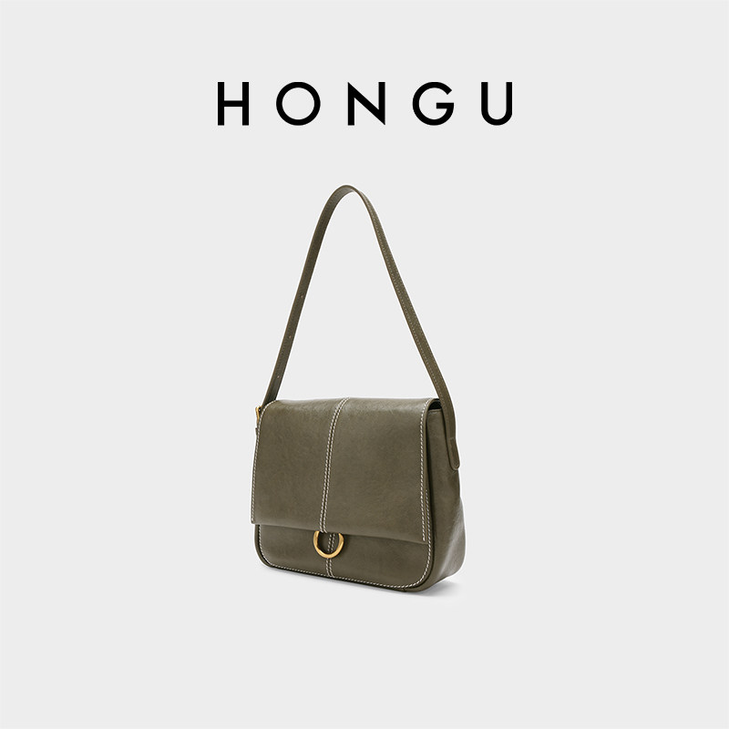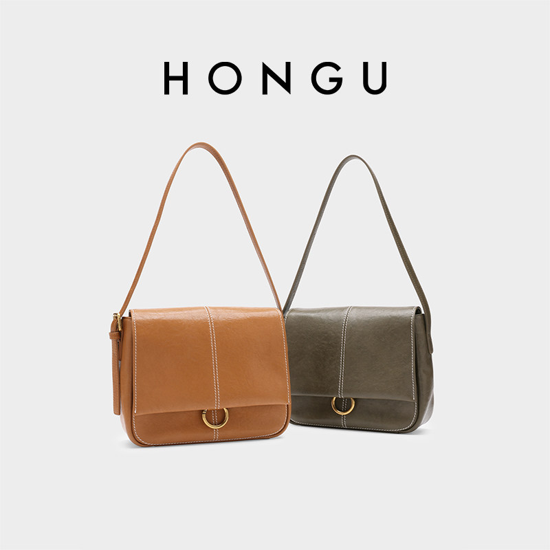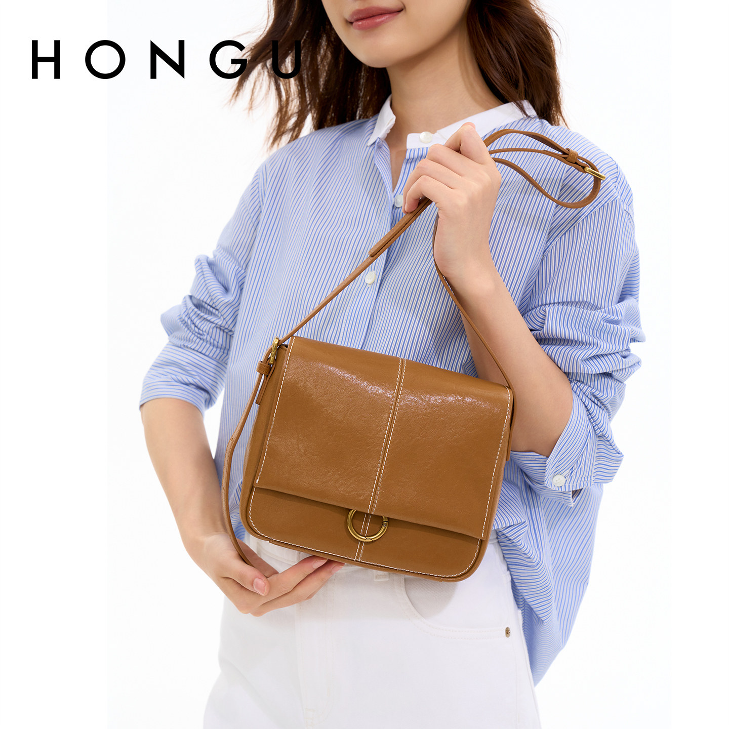 红谷包包女2025新款植鞣牛皮单肩腋下包真皮复古斜挎豆腐包女士包