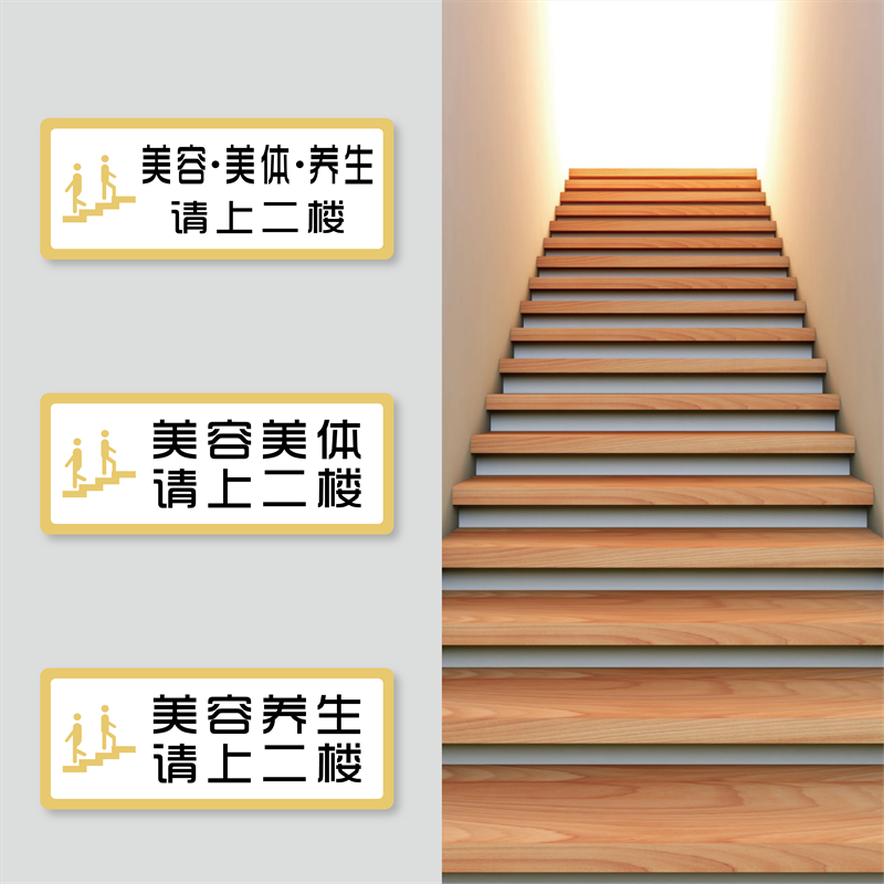 大号双层亚克力标志牌美容院美容美体养生请上二楼指引牌美甲美睫请上楼提示牌男士止步警示牌墙贴定制做