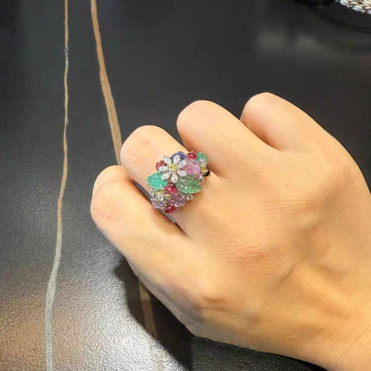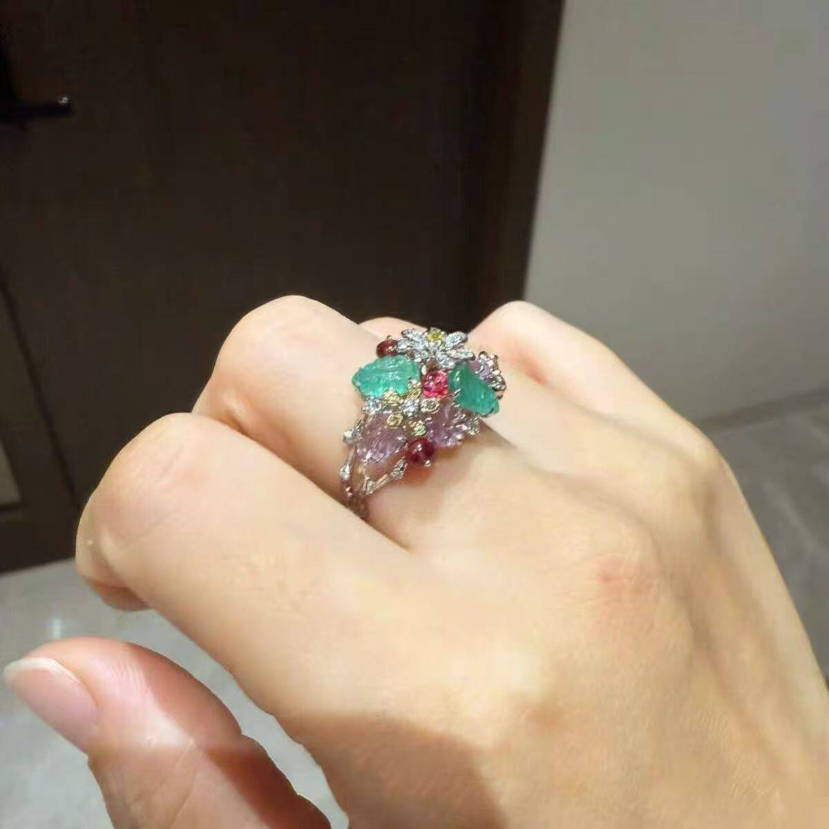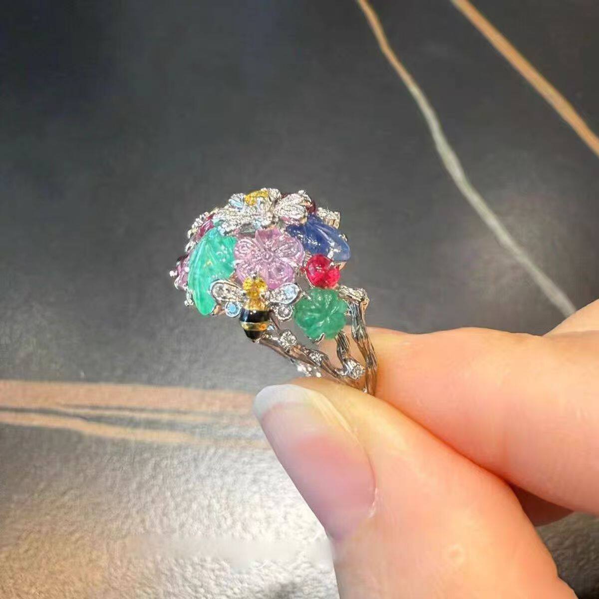 彩色花朵戒指女小众设计感高级轻奢食指戒复古宫廷风花朵指环配饰