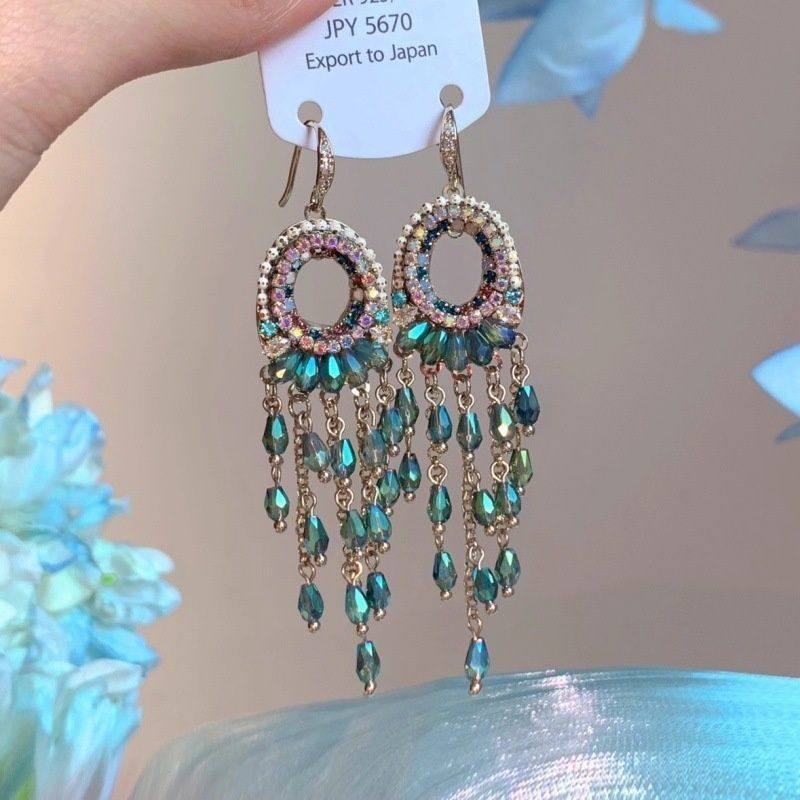 复古宫廷风玻璃水滴流苏耳环2025年新款潮网红气质绝美个性耳饰女
