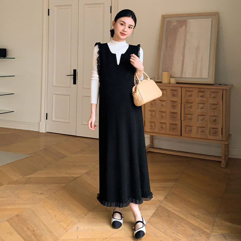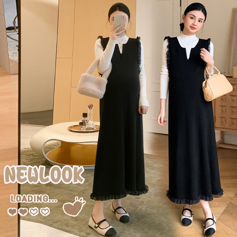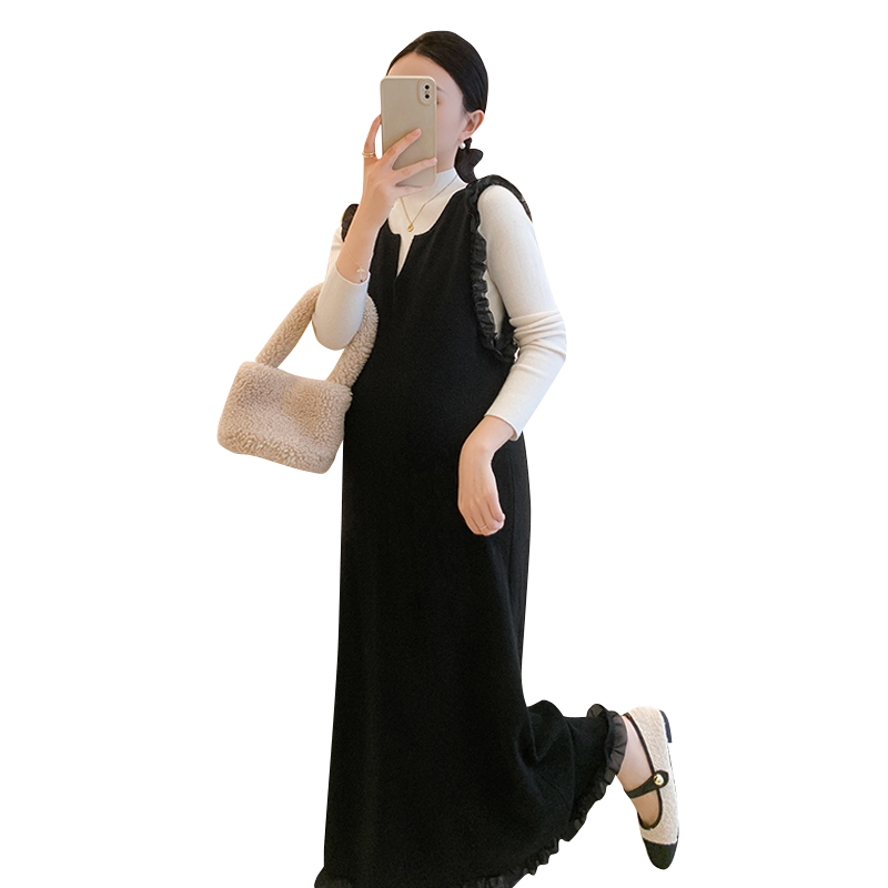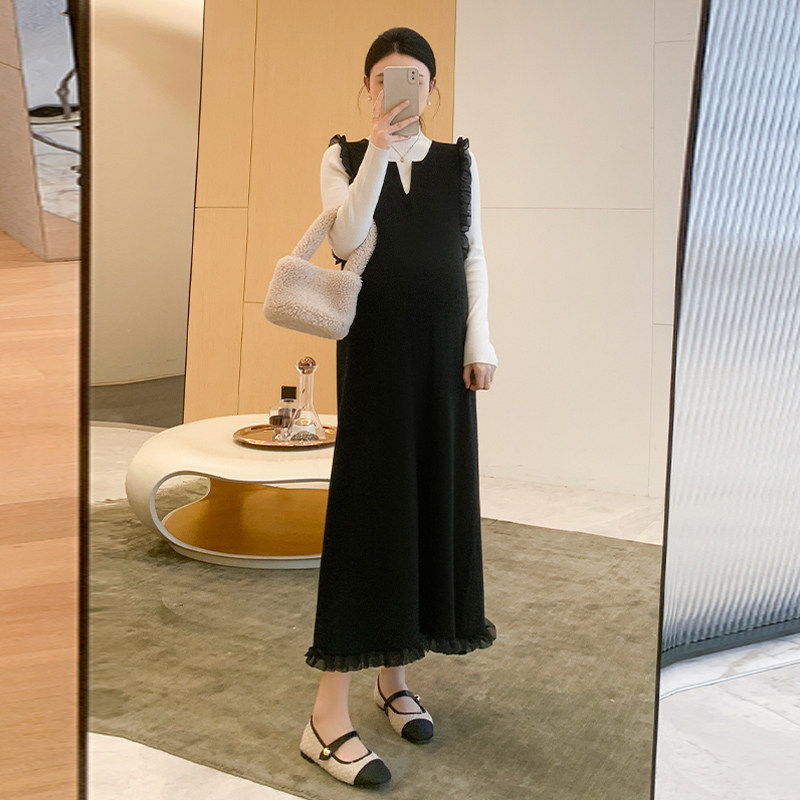 婧麒孕妇背心连衣裙2025新款秋冬新款套装孕期高级宽松法式长裙子