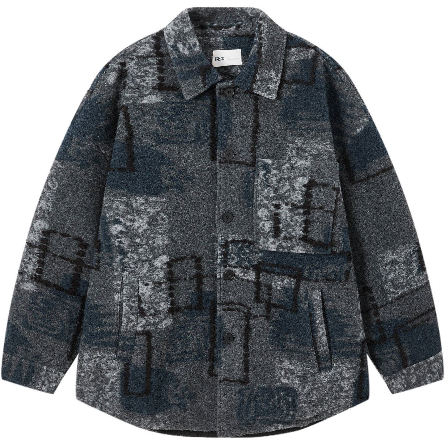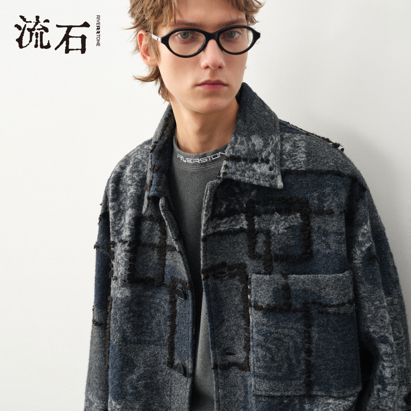 流石男装通勤羊毛呢外套2025年冬季新款男士个性提花格纹翻领夹克