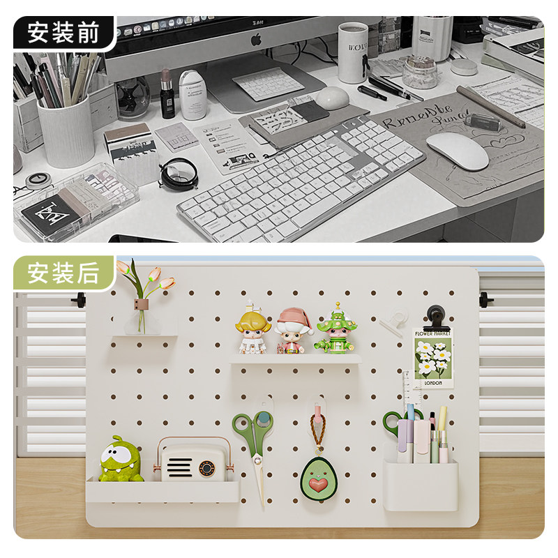 免打孔桌面洞洞板置物架壁挂式工位改造神器办公桌屏风隔断挡板