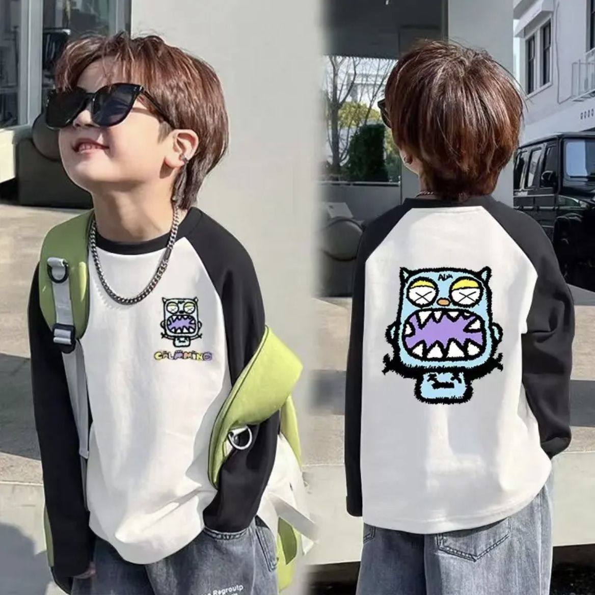 [7A抗菌小魔怪]齐齐熊男童t恤长袖春秋款宝宝假两件纯棉儿童女童