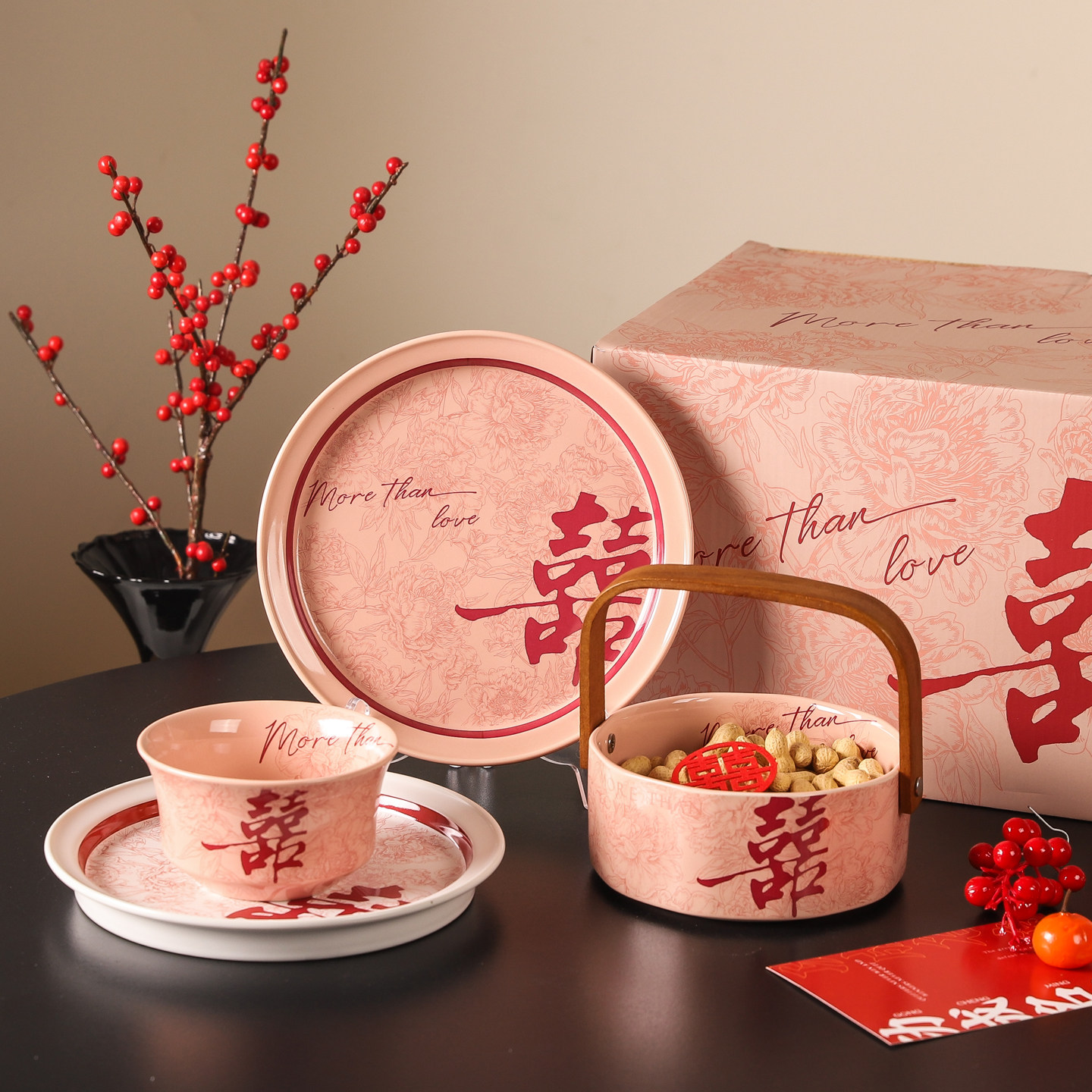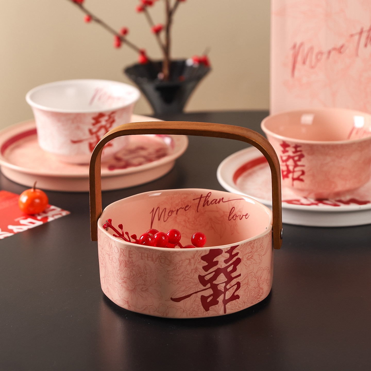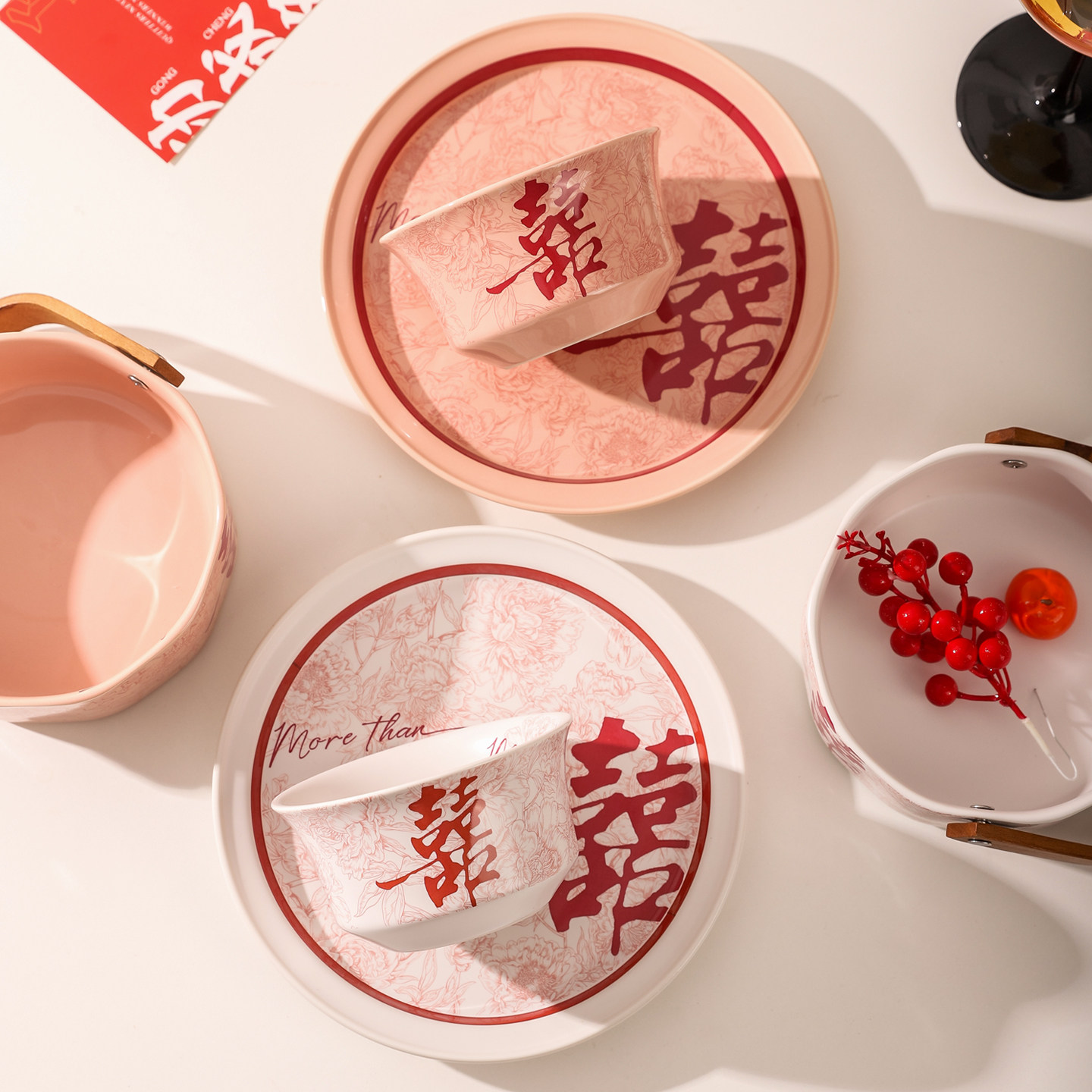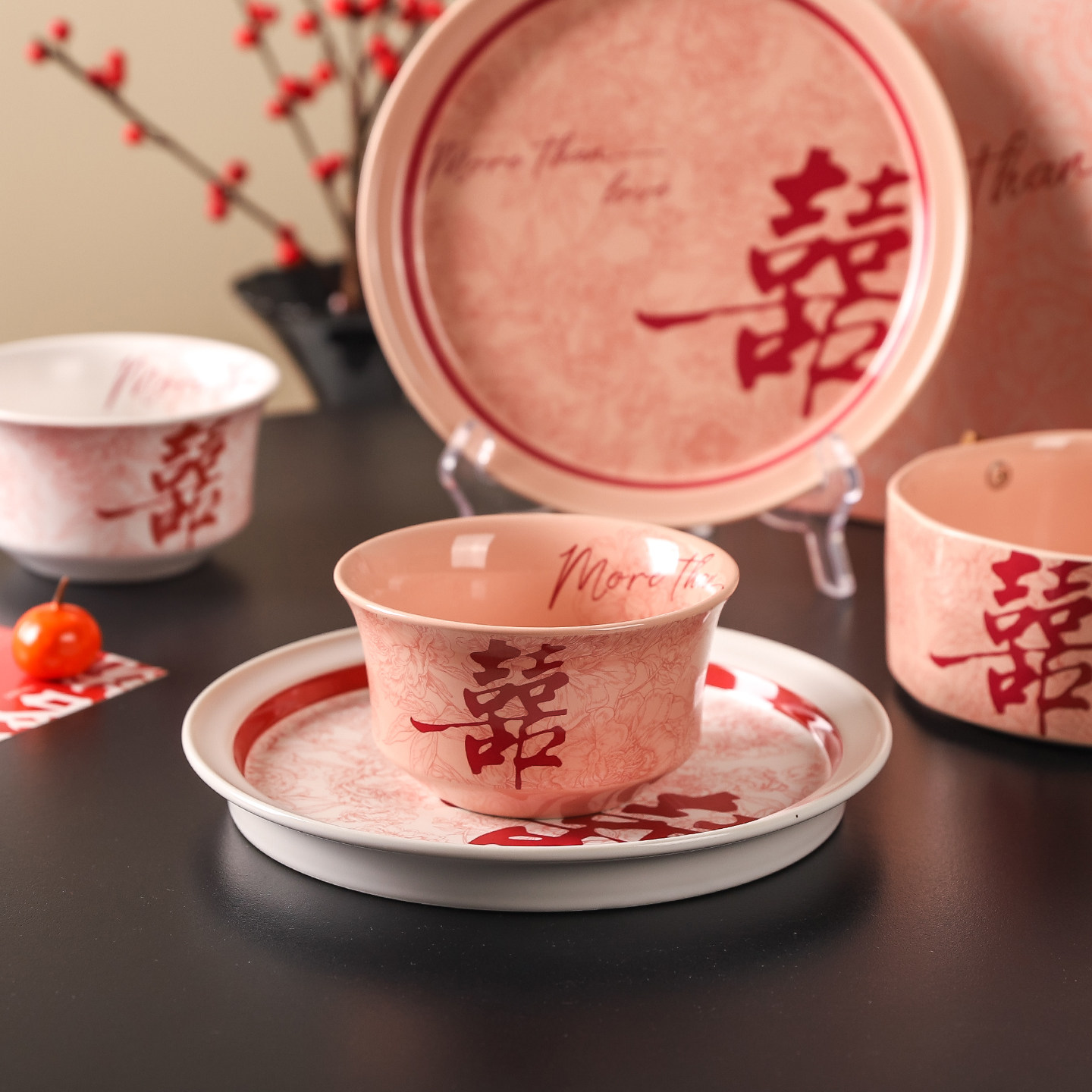 高档碗碟餐具陶瓷新婚礼物送新娘红色碗盘筷套装乔迁新居结婚礼盒