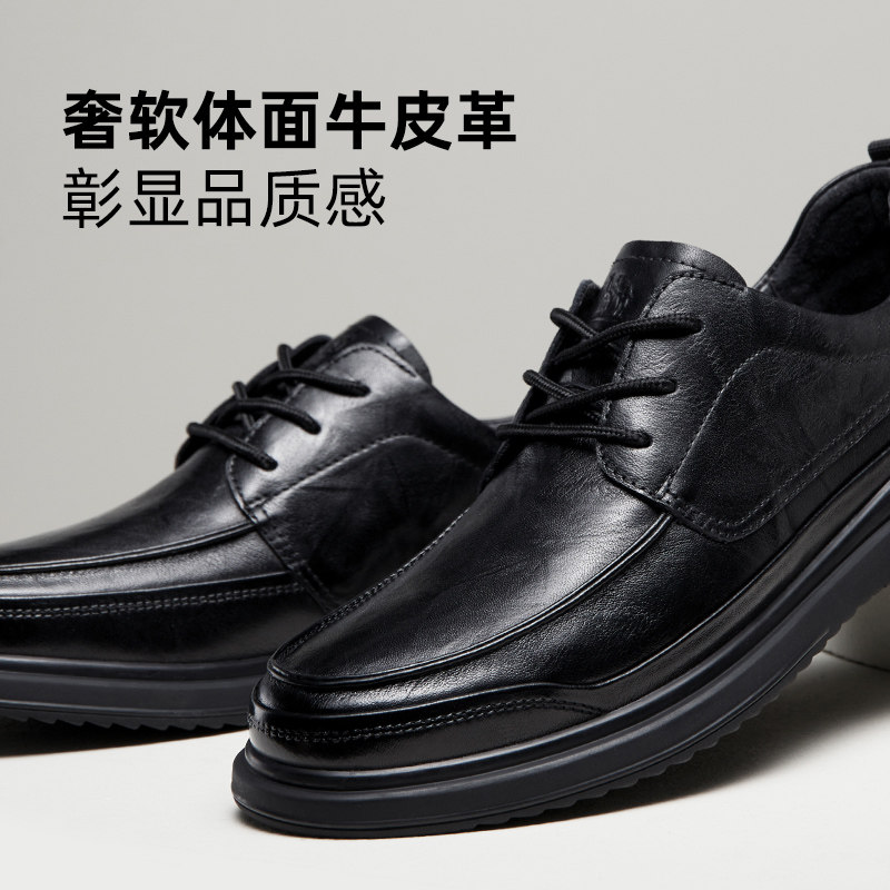 免开胶真皮休闲皮鞋男款软皮厚底增高透气商务系带平底缝线德比鞋