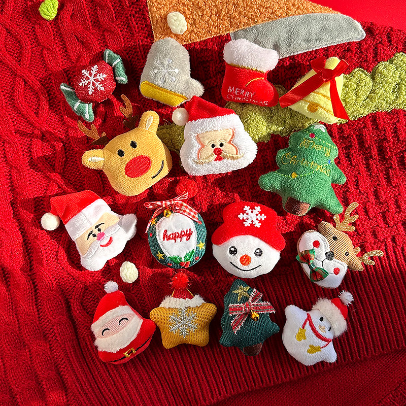 圣诞节装饰品礼物毛绒玩偶胸针女儿童服装毛衣别针围巾配饰小礼品