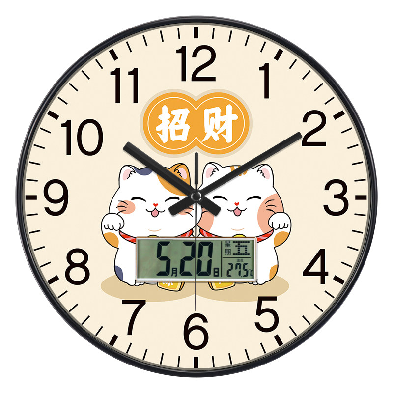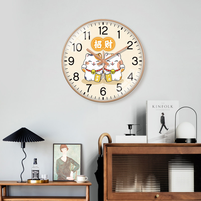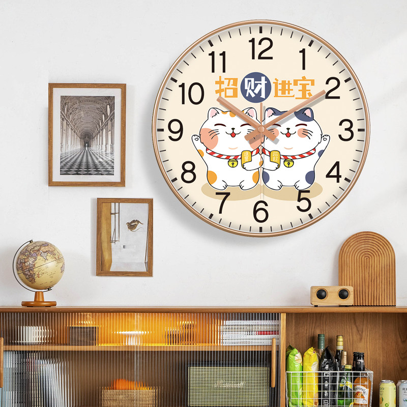 招财猫钟表挂钟客厅家用创意时钟挂墙装饰挂表卡通石英钟手工大气