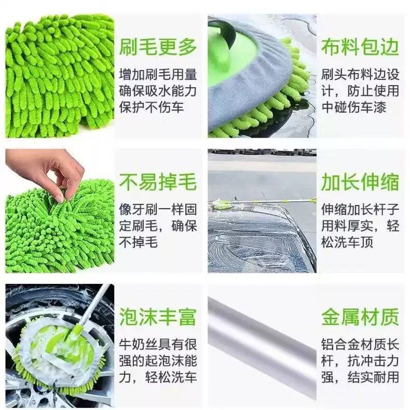 徕本弯杆洗车拖把不伤车漆软毛伸缩车用汽车刷子专用除尘掸子神器