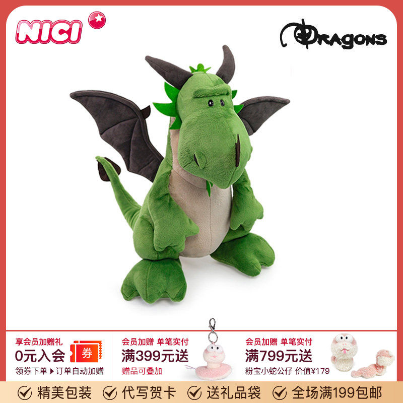 德国NICI绿恐龙公仔绿恐龙索克毛绒玩具睡觉抱枕布娃娃玩偶男礼物