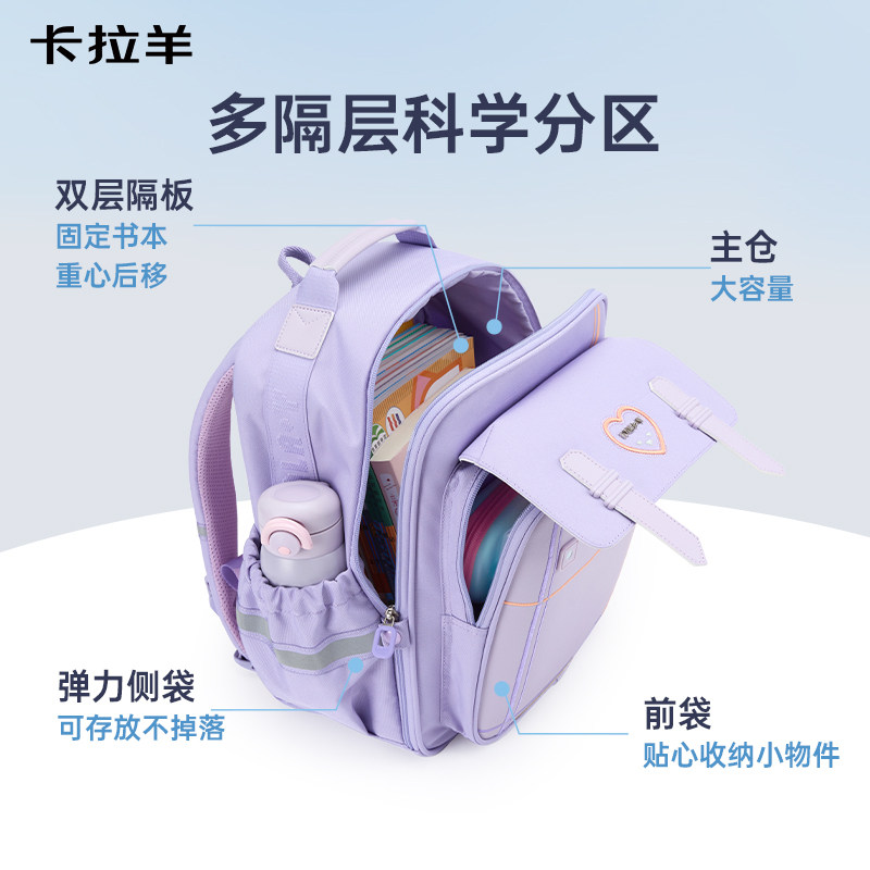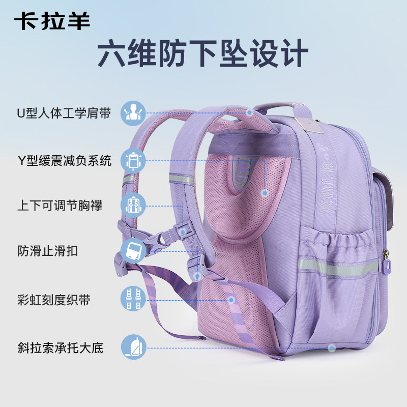 【新品】卡拉羊1-4年级小学生云朵书包减负防下坠男女生双肩包超轻高颜值时尚百搭儿童背包青岚学院