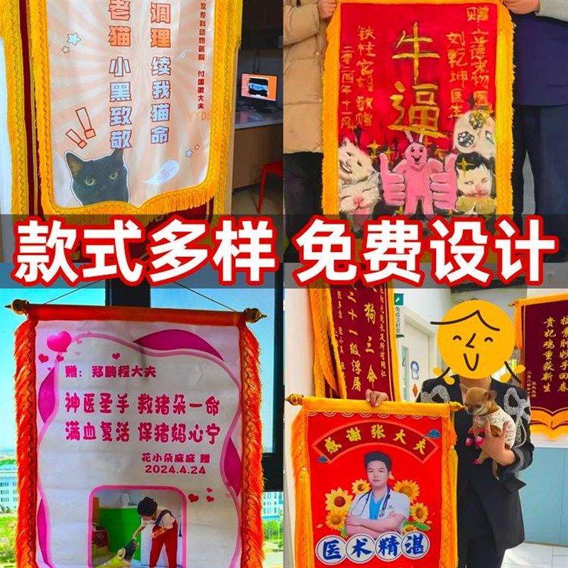锦旗定制感谢宠物医生医院感谢赠送医护人员护士服务高档旌旗订做