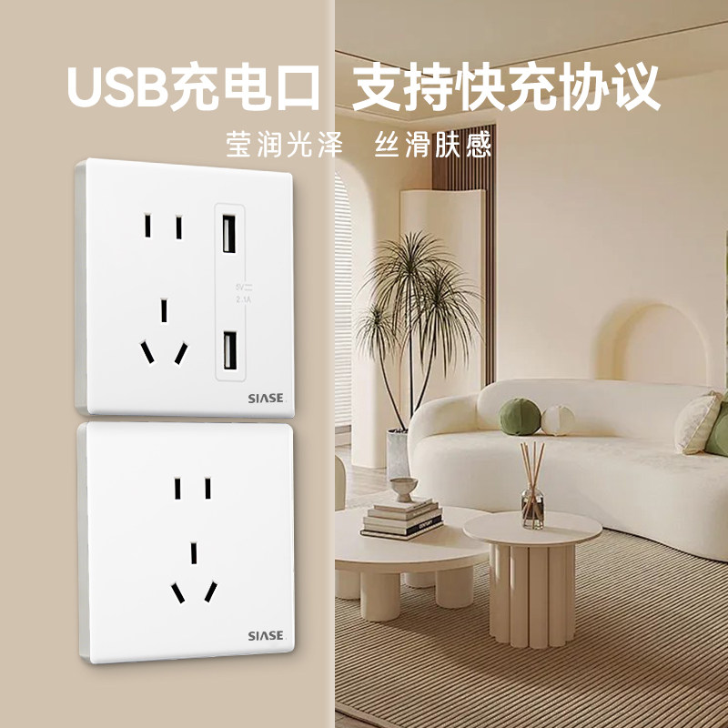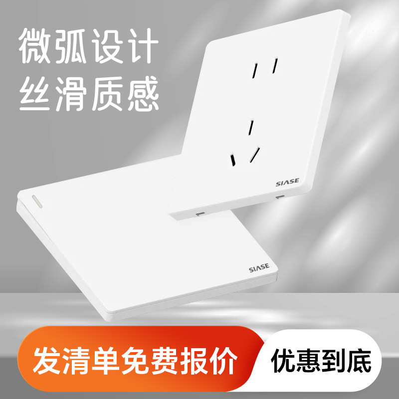 深思M1新款86型白色开关插座家庭装修亮面光斜五孔一开双控空调插