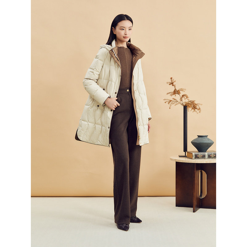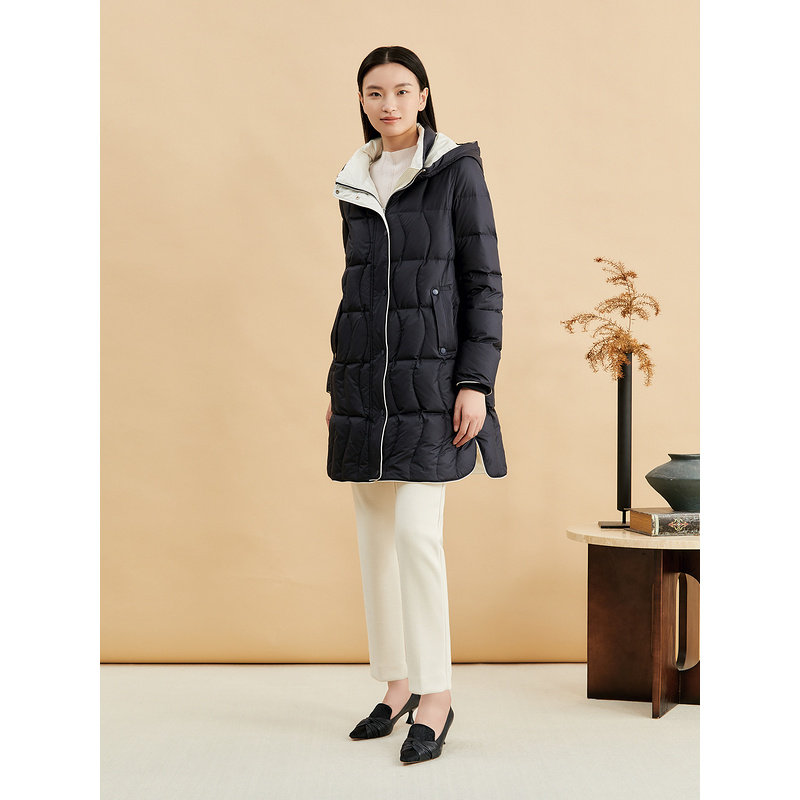 YINER音儿专选女装冬季时尚中长款零压感加厚保暖撞色连帽羽绒服
