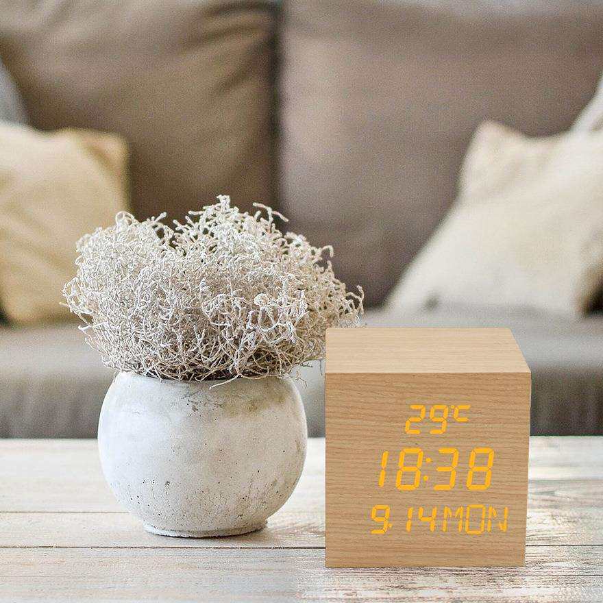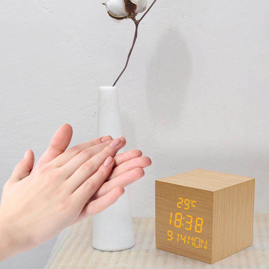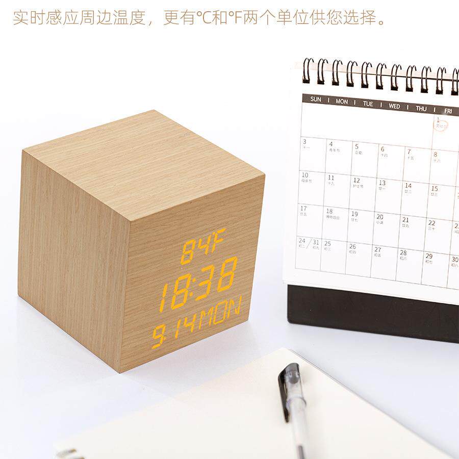 创意简约LED木头闹钟 懒人贪睡闹钟 家居装饰品 卧室座钟