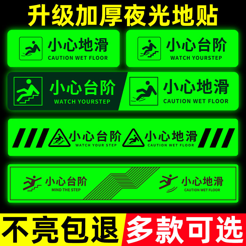 小心台阶地贴夜光贴纸小心地滑贴纸当心地滑指示牌安全标识警示贴上下楼梯小心地滑温馨提示贴耐磨防水防滑zw
