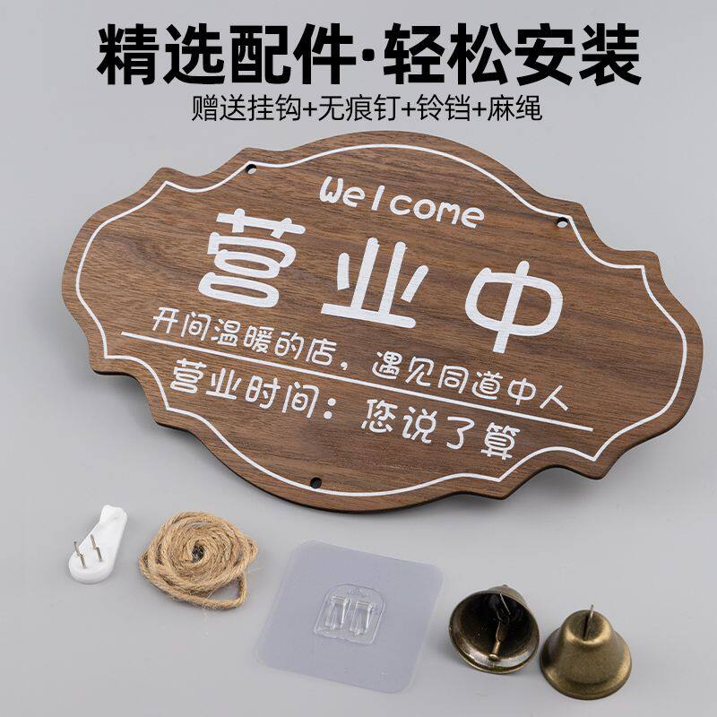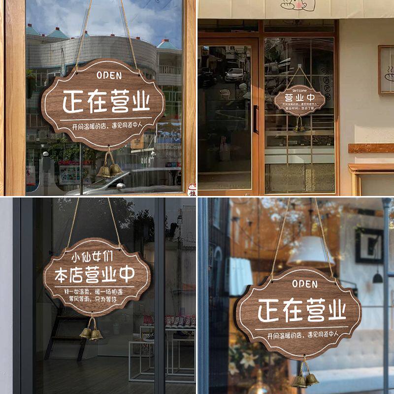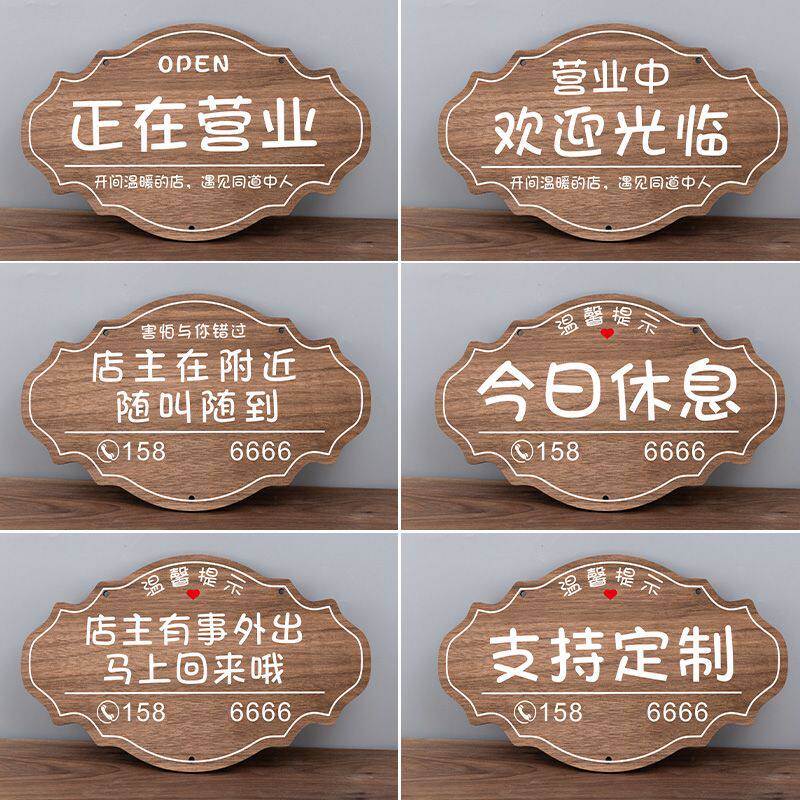 营业中挂牌创意定制店门口服装店玻璃门外出临时牌欢迎光临店主外出马上回来温馨提示门店双面营业时间告示牌