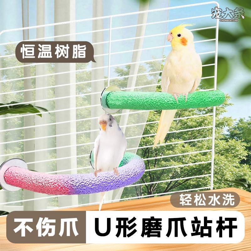 鹦鹉站杆鸟站架磨砂站杆磨爪U形树脂站棒虎皮玄凤磨嘴站台鸟配件