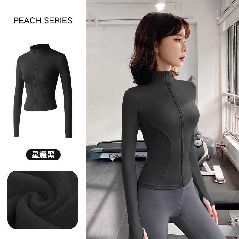 瑜伽服外套女秋冬加绒保暖修身显瘦运动上衣健身房长袖跑步服骑行
