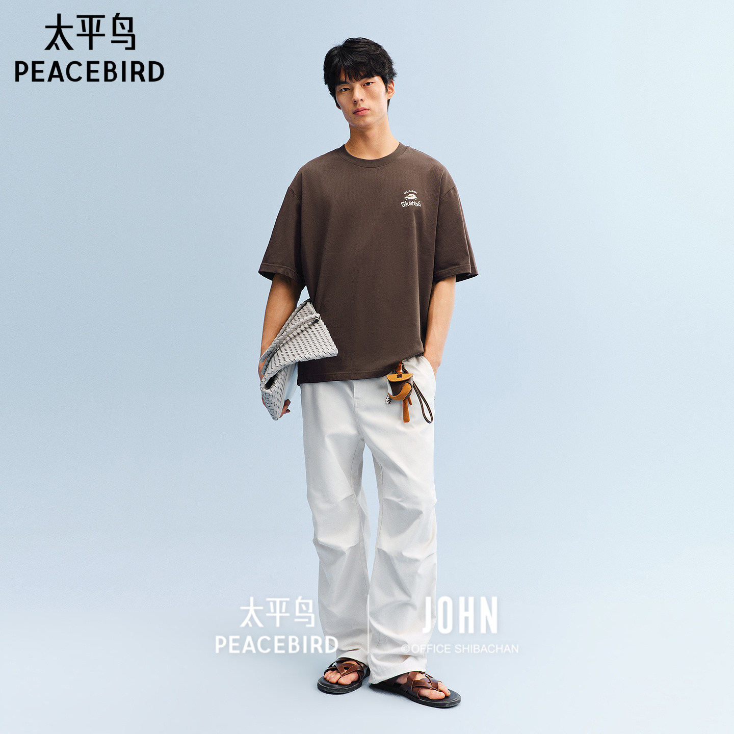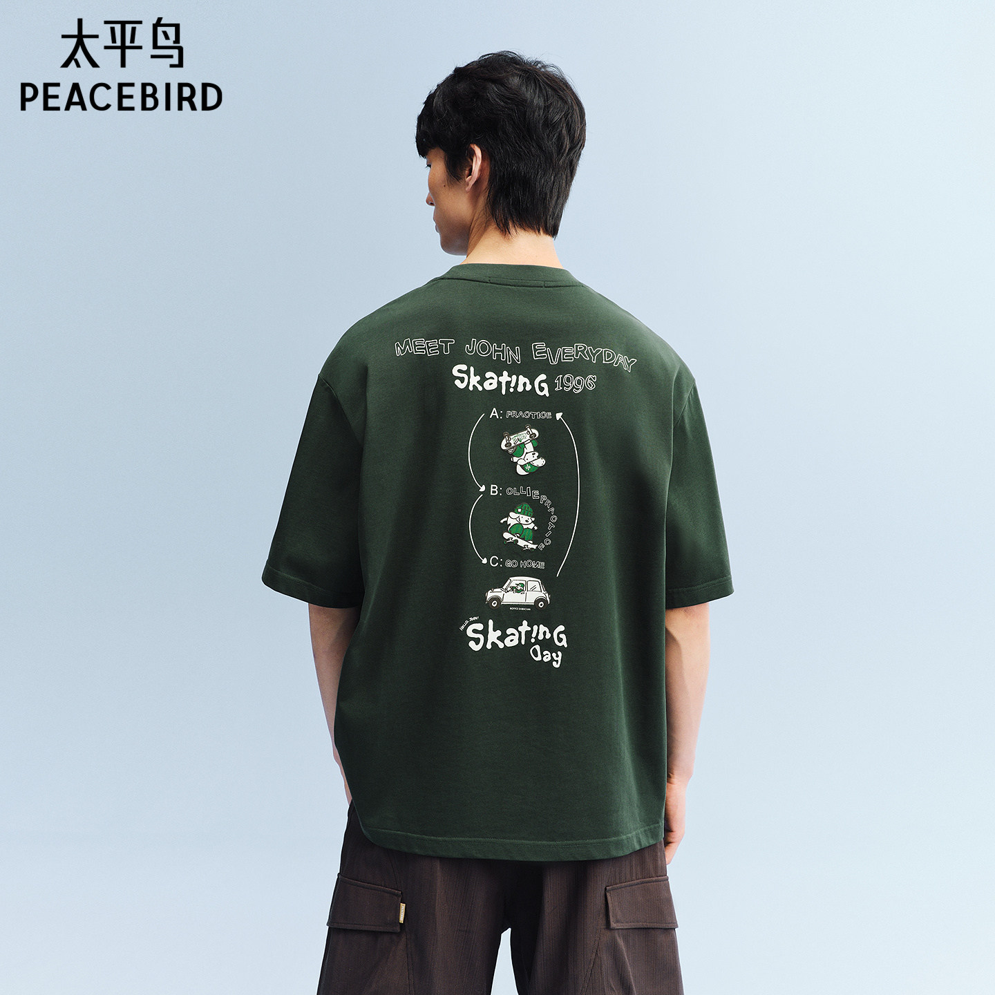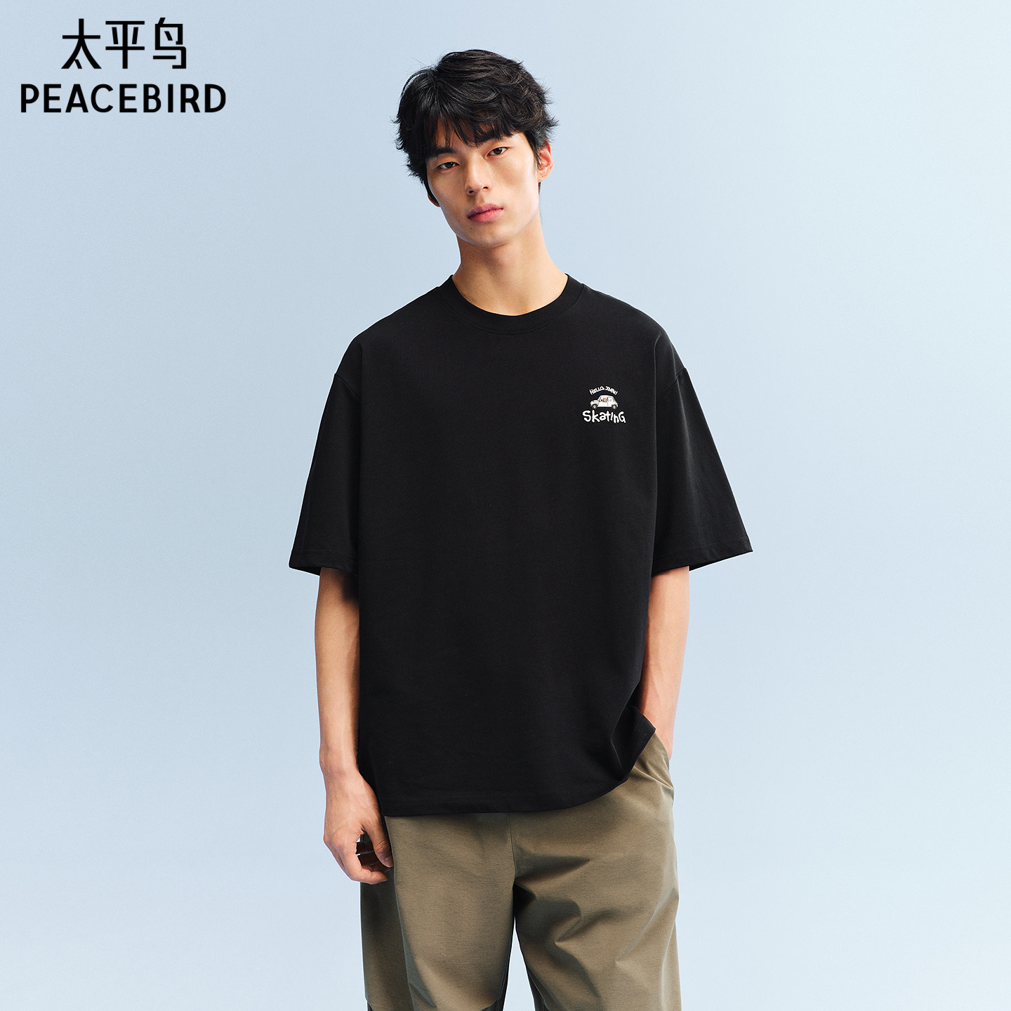 太平鸟男装 滑板小狗联名重磅印花T恤26夏新款宽松半袖纯棉短袖潮