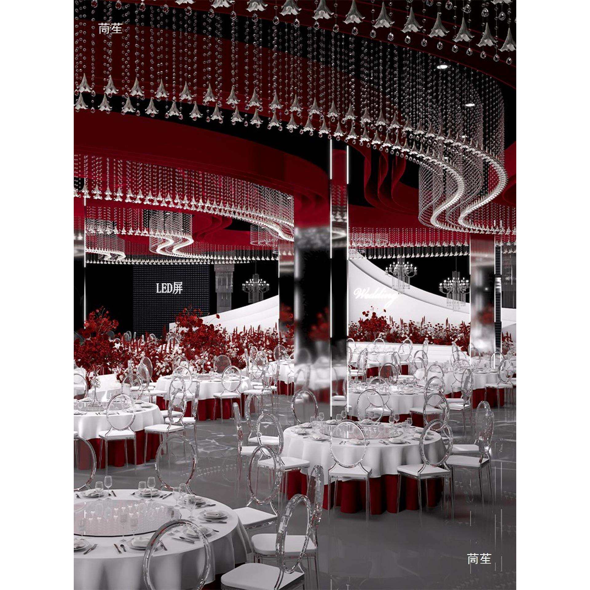 婚礼堂灯光婚礼宴会厅水晶珠帘吊灯婚庆浪漫氛围艺术灯具设计