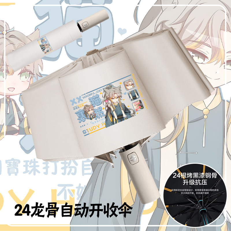 奇喵君故事猫小九历险记雨伞猫白灵黑胶防晒学生自动伞晴雨两用