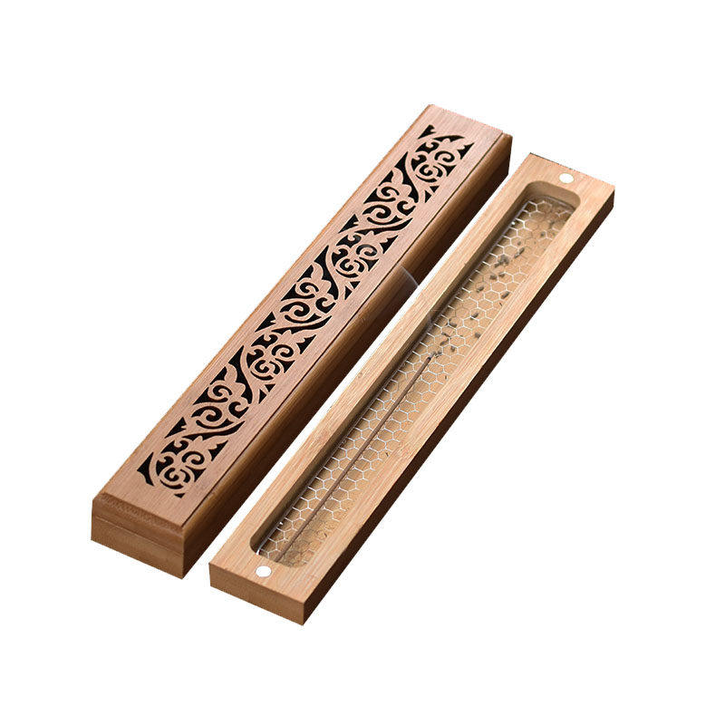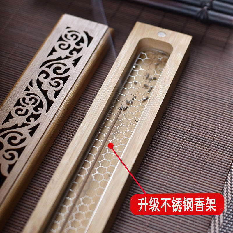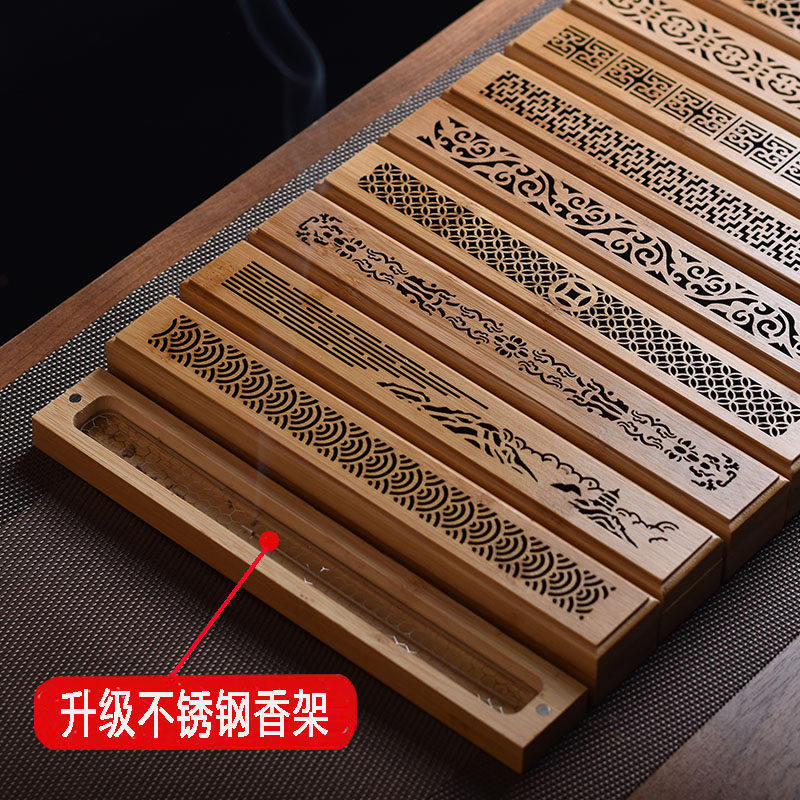 楠竹沉香线香盒檀香卧香炉茶道香插镂空熏香炉香托底座不锈钢网架