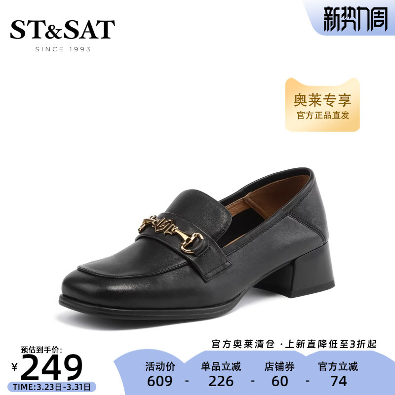 星期六时尚好搭乐福鞋春季金属扣一脚蹬中跟女鞋SS31111268