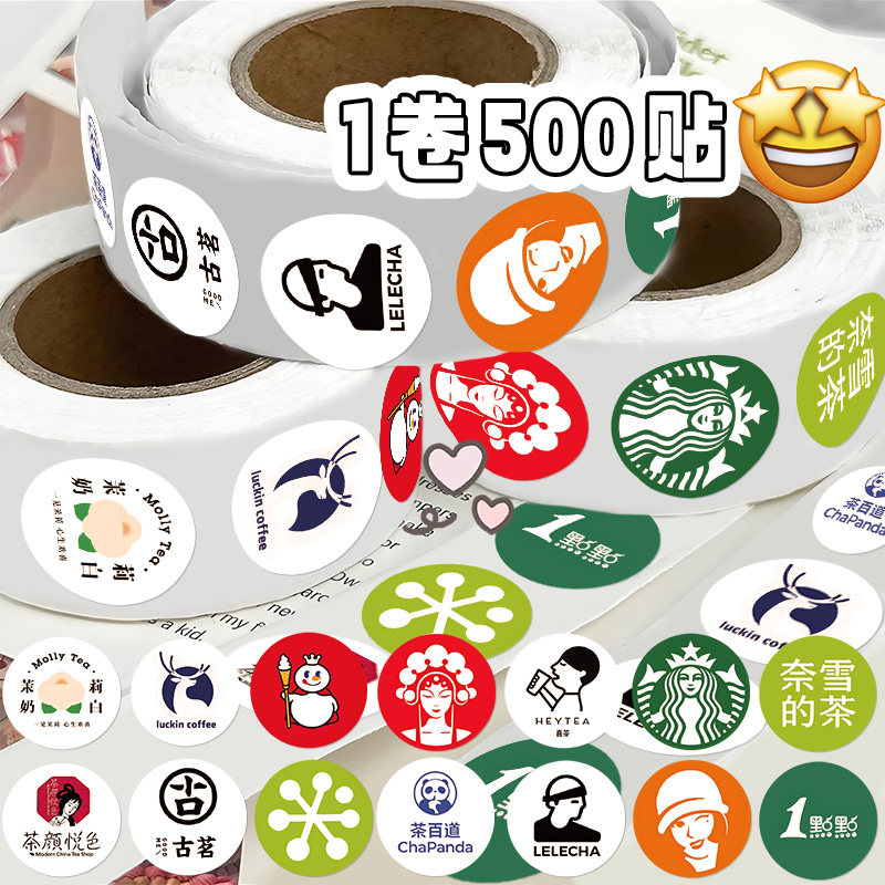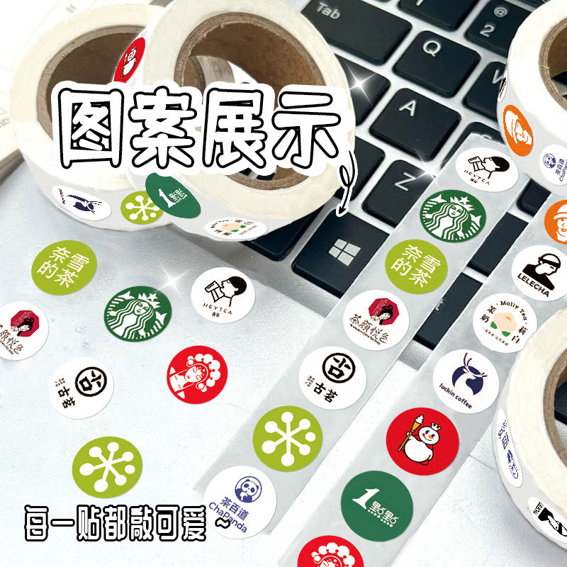 奶茶logo卷卷贴纸创意ins风打包素材封口贴小红书爆款手机壳手账行李箱装饰