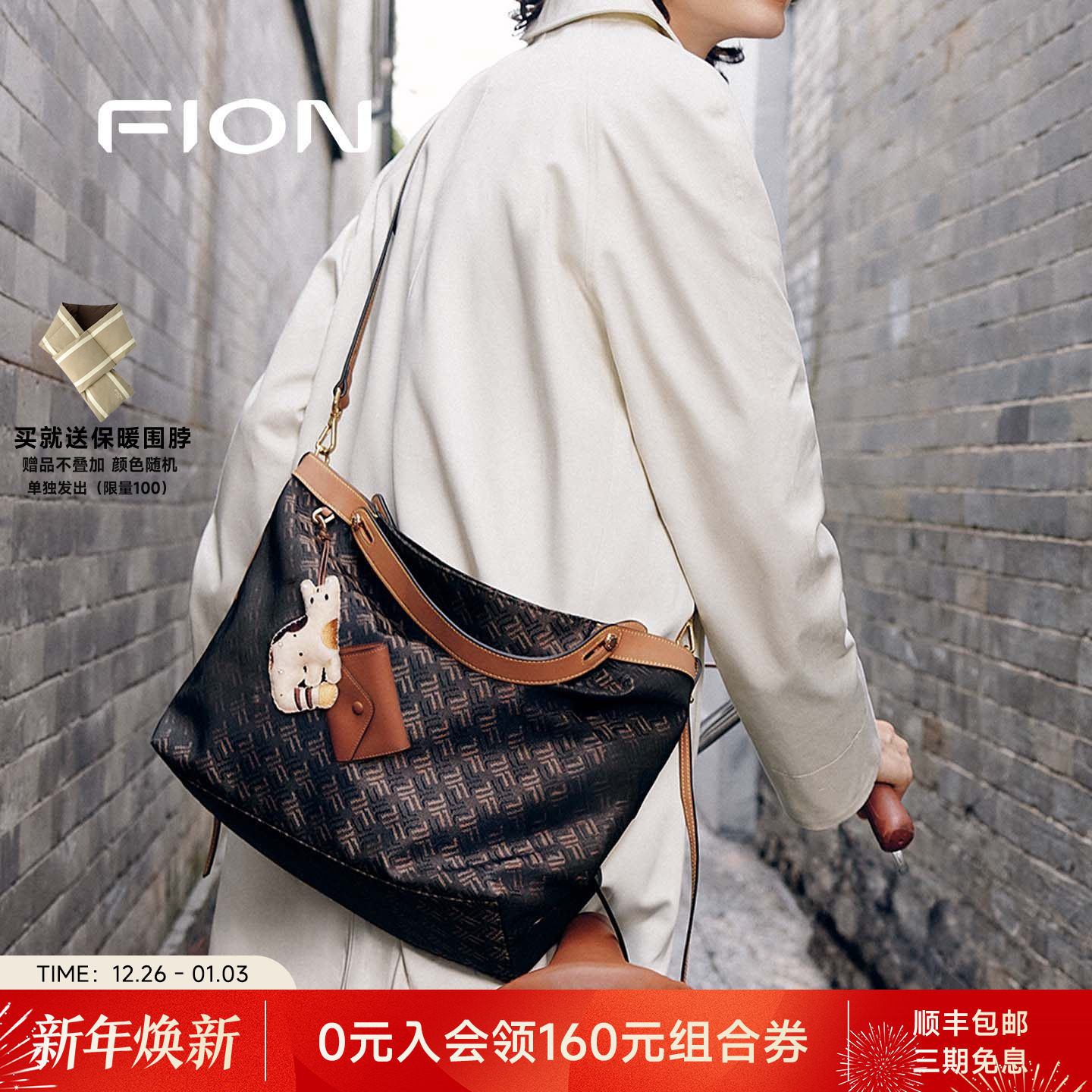Fion/菲安妮手提托特包2025新款高级感单肩斜挎包包女通勤菜篮子